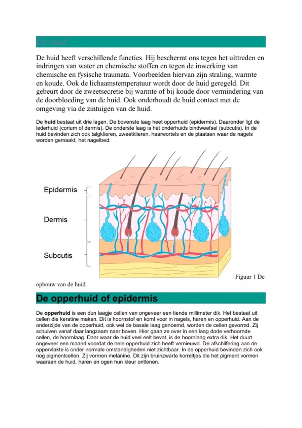 lederhuid en het onderhuids bindweefsel. Daarnaast heeft de huid een aantal belangrijke