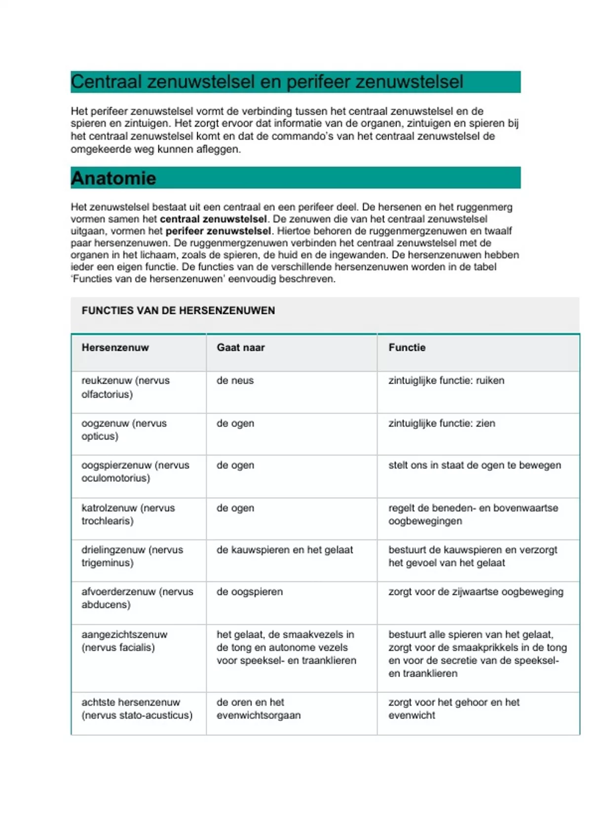 ‘Functies van de hersenzenuwen’ eenvoudig beschreven.