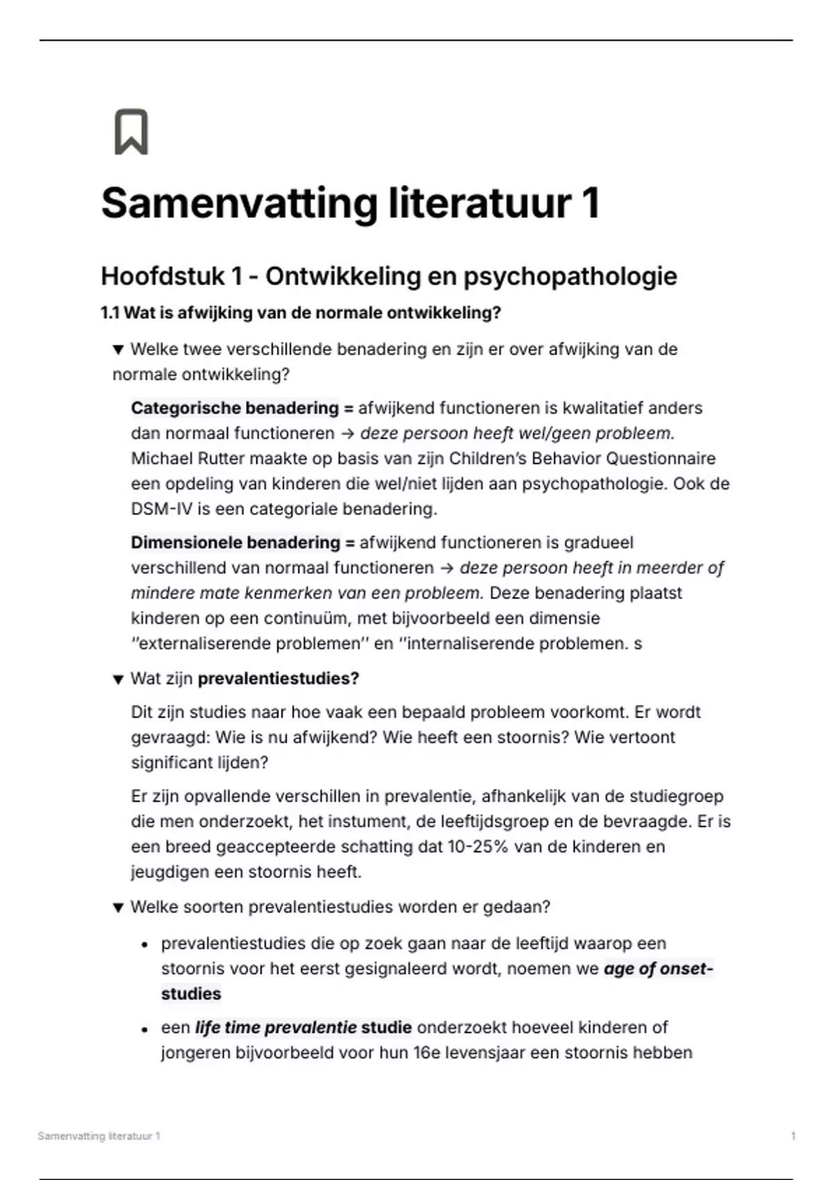 Hoofdstuk 1 - Ontwikkeling en psychopathologie
