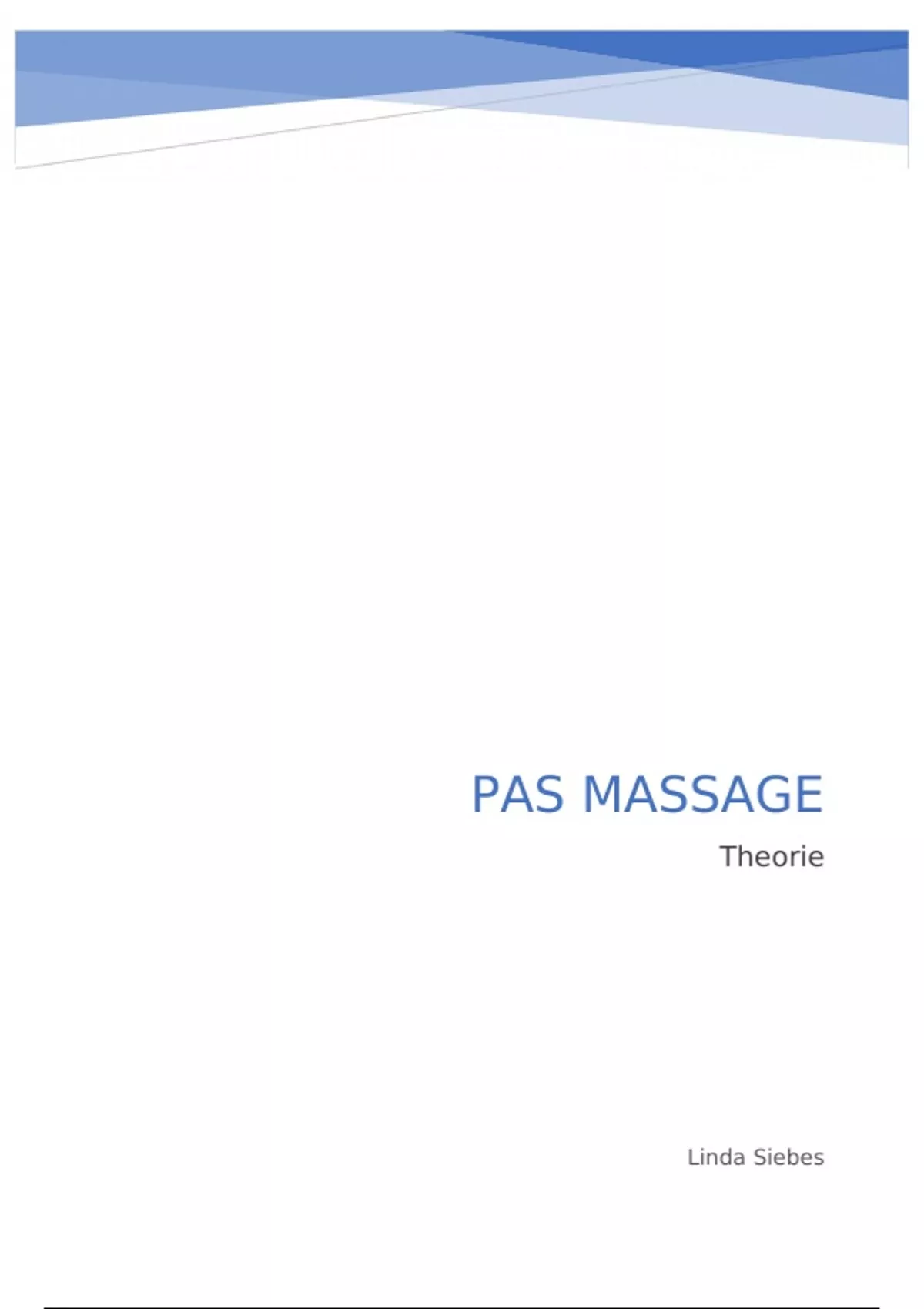 Een samenvatting over de theorie tijdens de PAS Massage gevraagd kan worden.