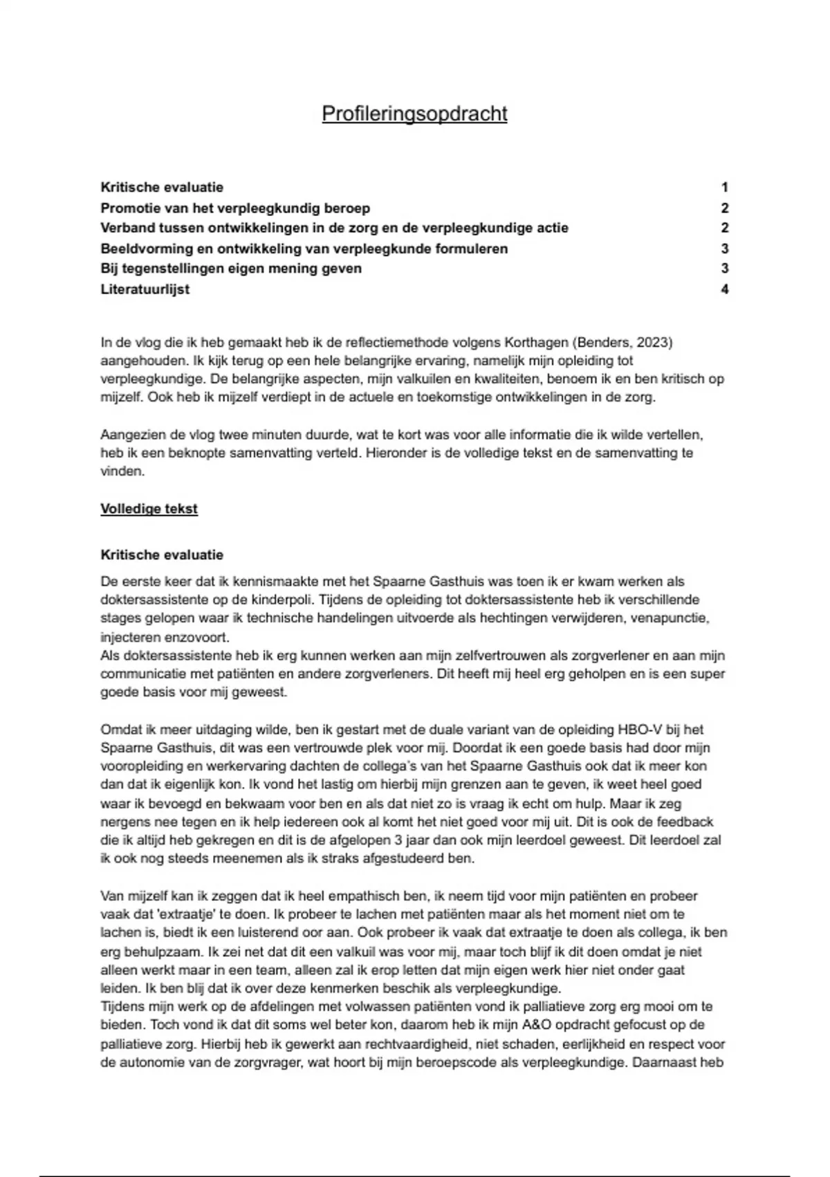verpleegkundige. De belangrijke aspecten, mijn valkuilen en kwaliteiten, benoem ik en ben kritisch op