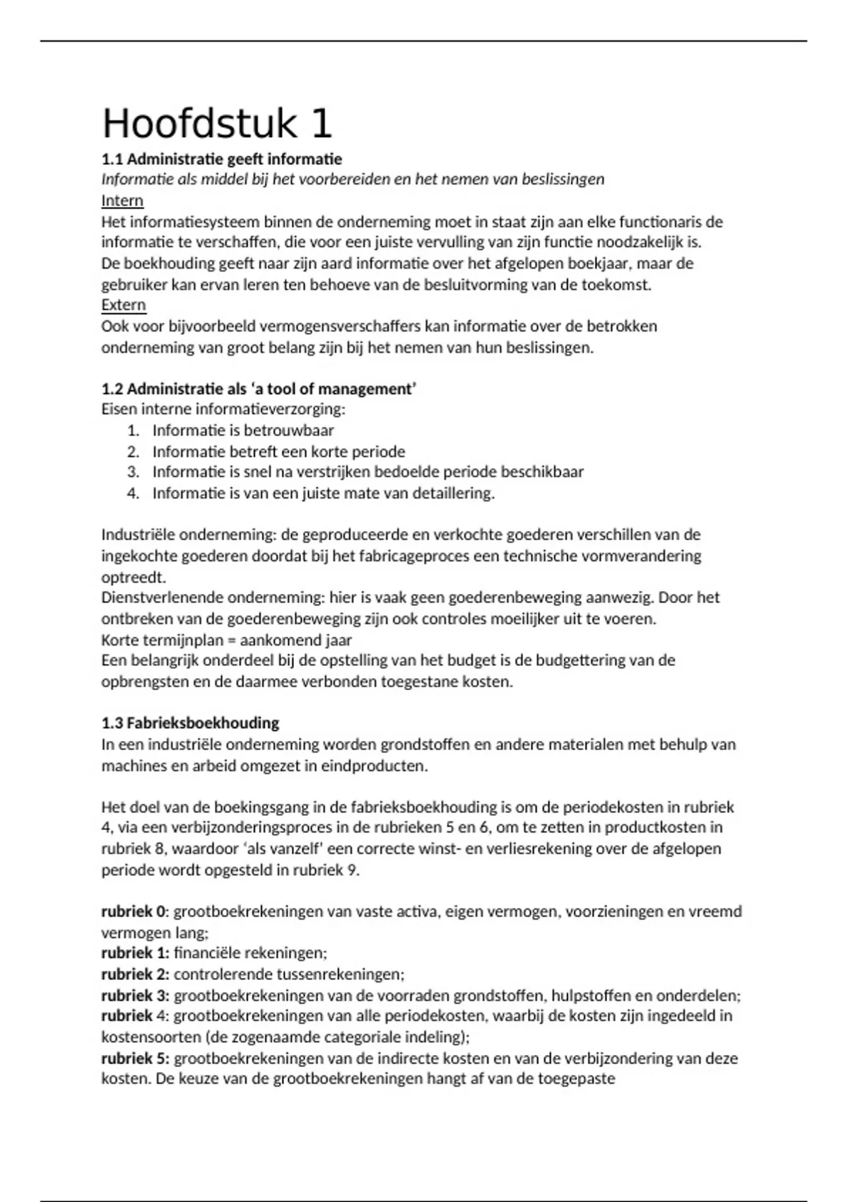 rubriek 4: grootboekrekeningen van alle periodekosten, waarbij de kosten zijn ingedeeld in