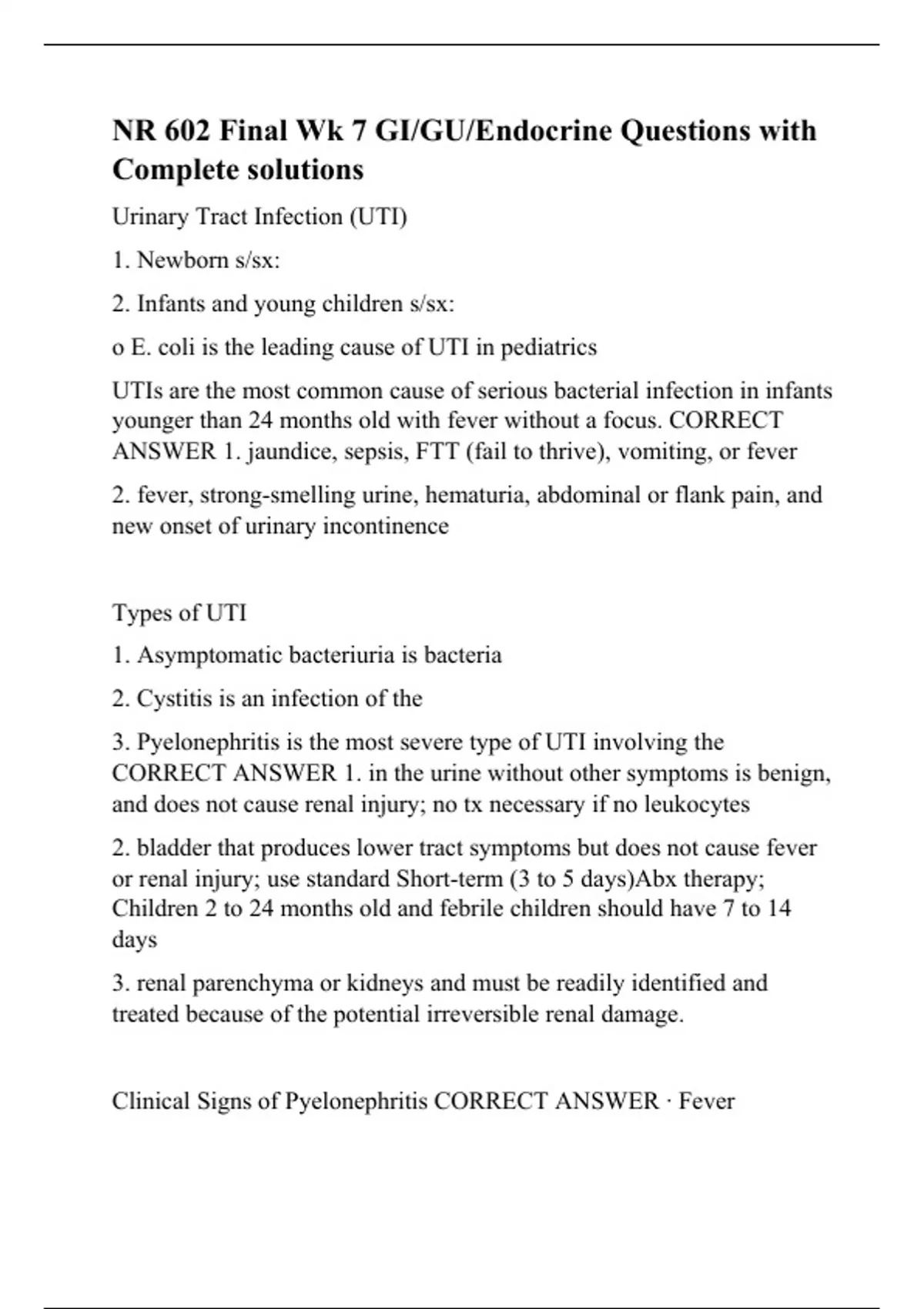 NR 602 Final Wk 7 GI/GU/Endocrine Questions with Complete solutions