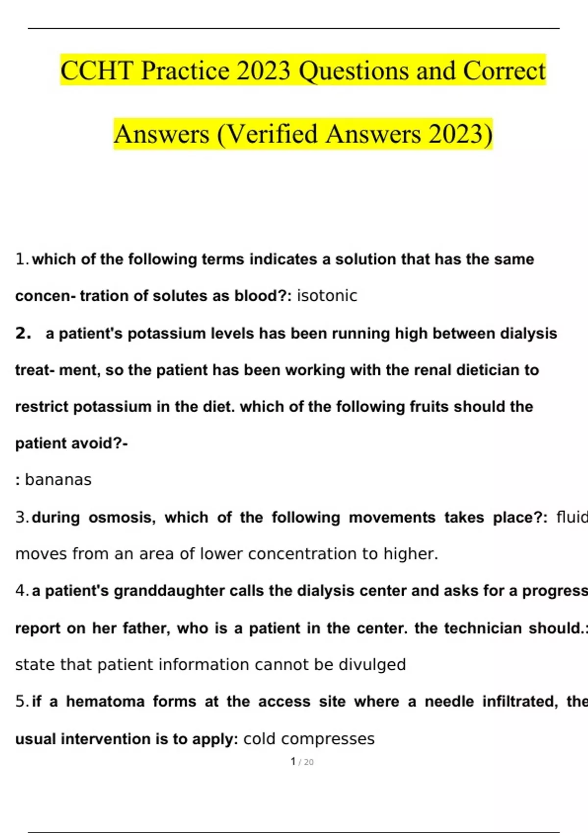 CCHT STUDY BUNDLE PACK SOLUTION 2023 (Questions and Answers )(Verified Answers)