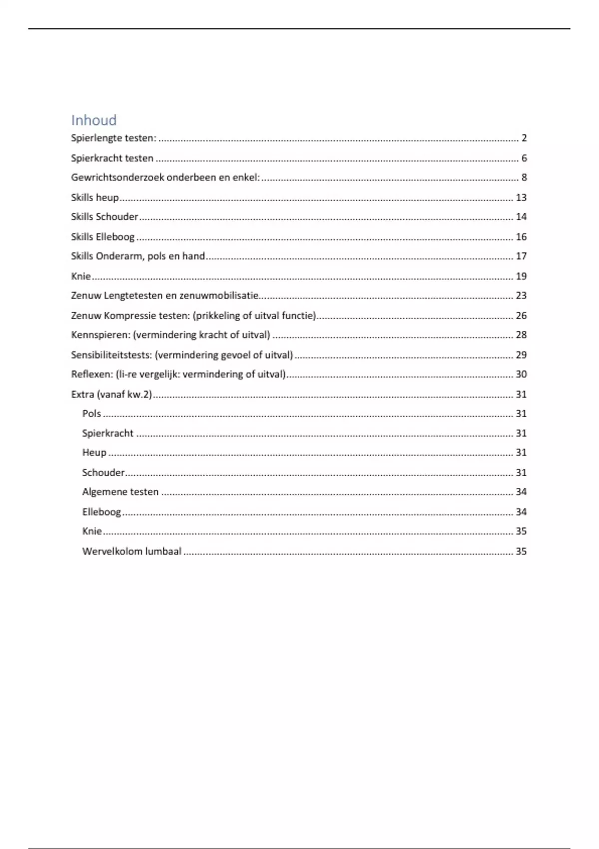 Kennspieren: (vermindering kracht of uitval) ....................................................................................... 28
