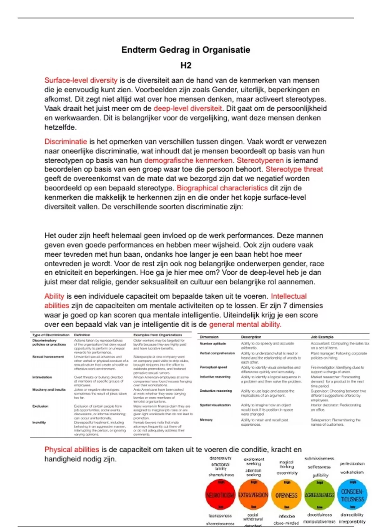 Dit document bevat alle stof voor de enterm van gedrag in organisaties. Alle belangrijke begrippen worden behandeld en ook de kennis uit de hoorcolleges. De visuele weergaves en grafieken zijn ook inbegrepen. Kortom genoeg kennis om de endterm te halen.
