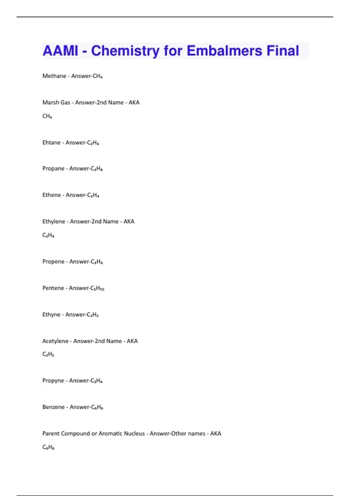 AAMI - Chemistry for Embalmers Final Questions & Answers Already Passed!!