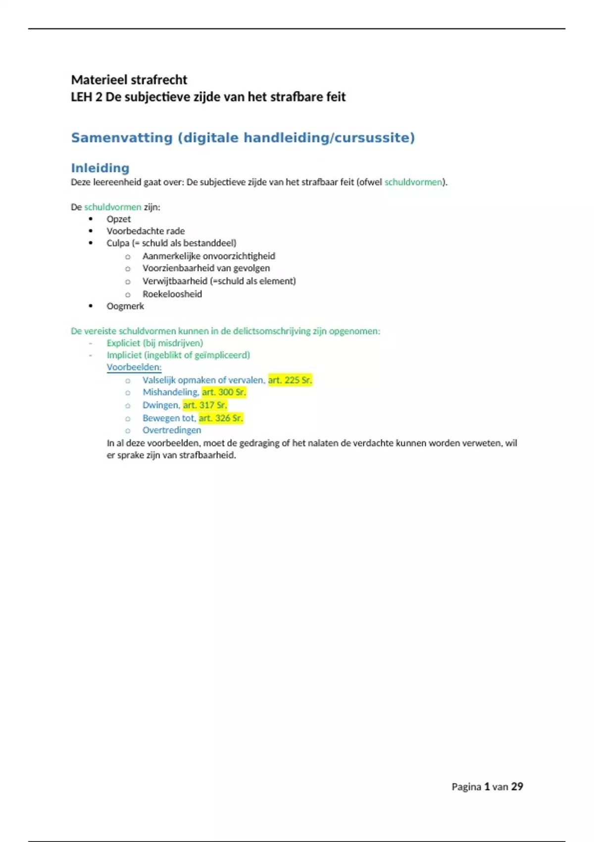 Deze leereenheid gaat over: De subjectieve zijde van het strafbaar feit (ofwel schuldvormen).