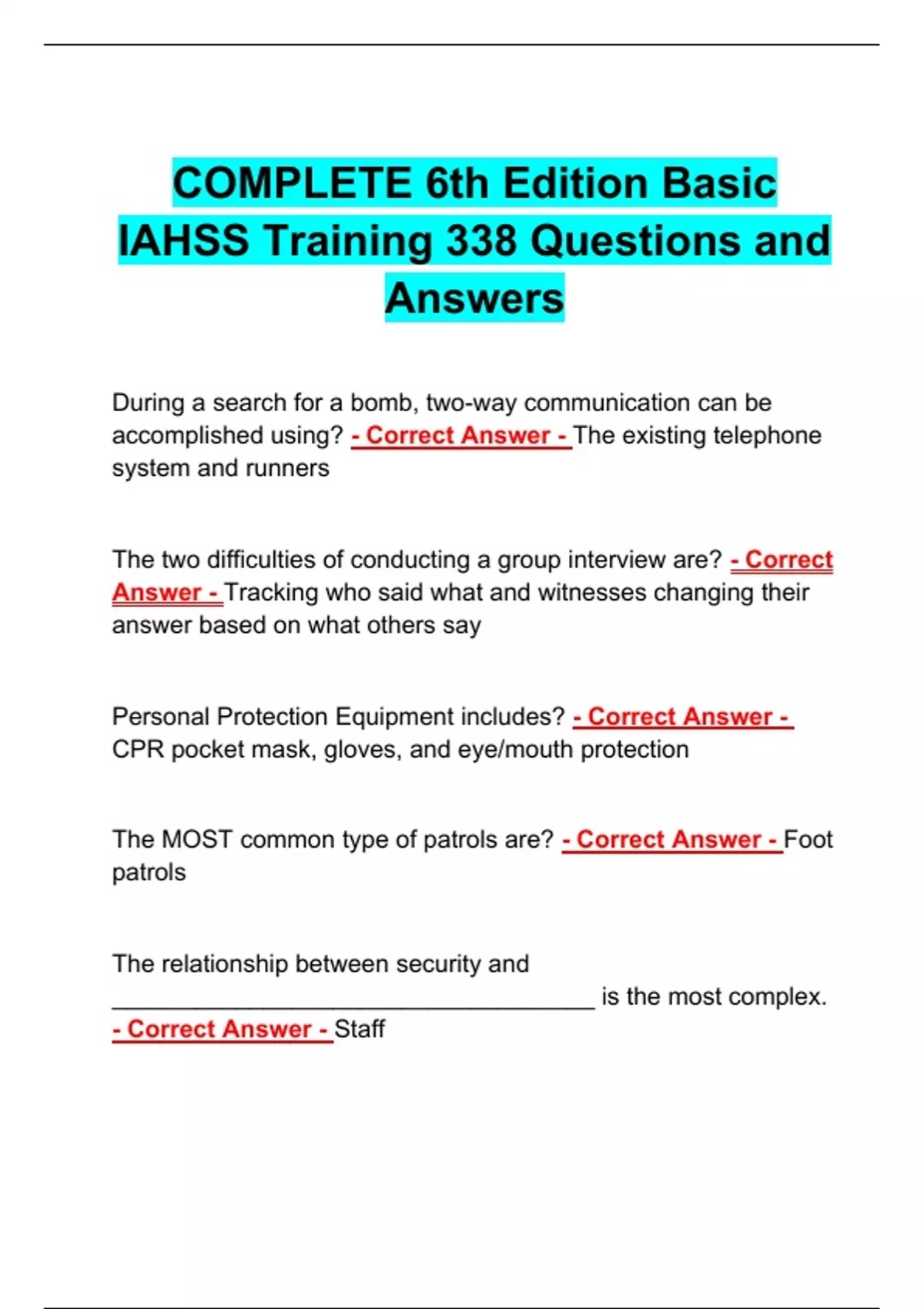 COMPLETE 6th Edition Basic IAHSS Training 338 Questions and Answers COMPLETE 6th Edition Basic IAHSS Training 338 Questions and Answers COMPLETE 6th Edition Basic IAHSS Training 338 Questions and Answers
