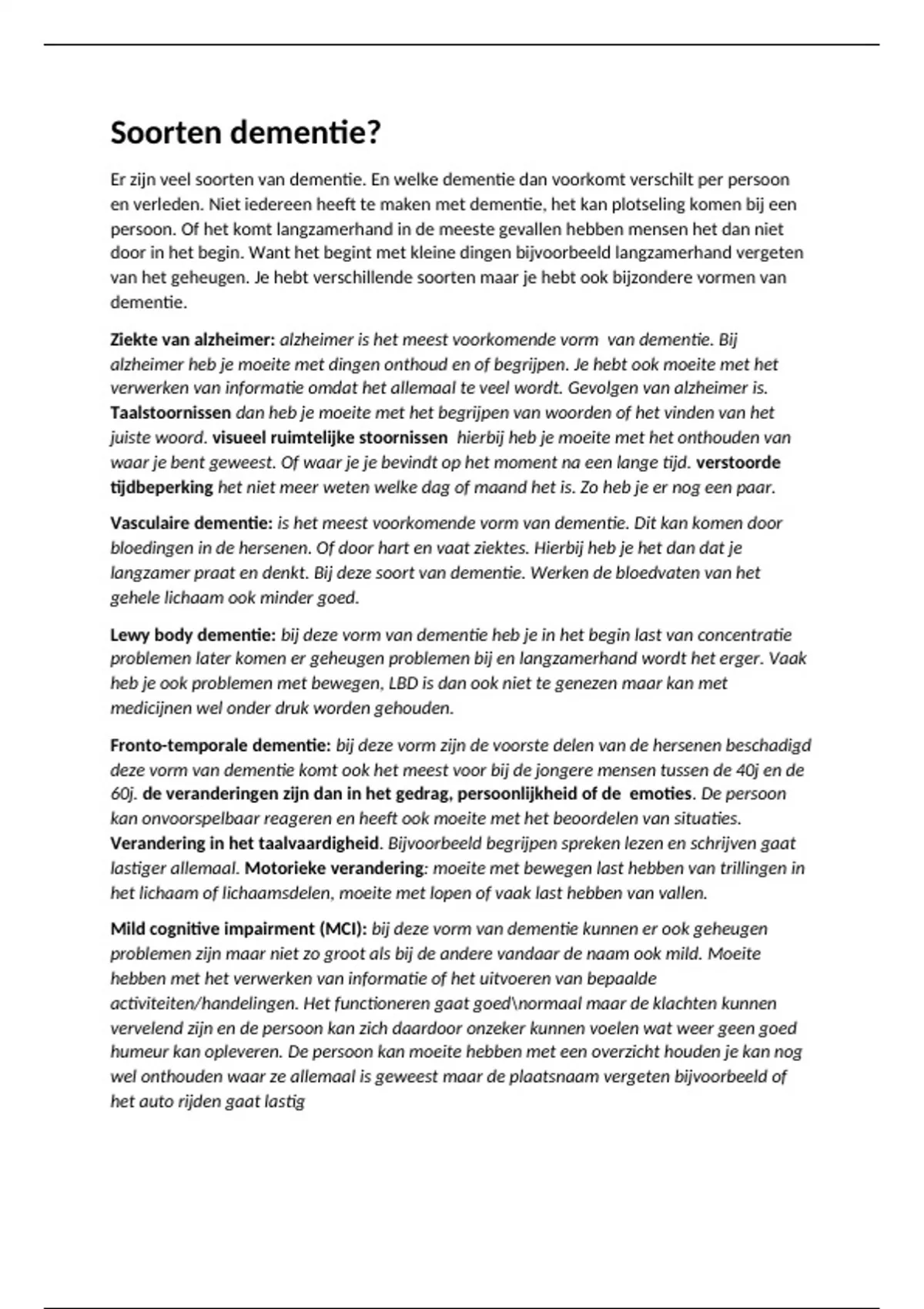 Er zijn veel soorten van dementie. En welke dementie dan voorkomt verschilt per persoon