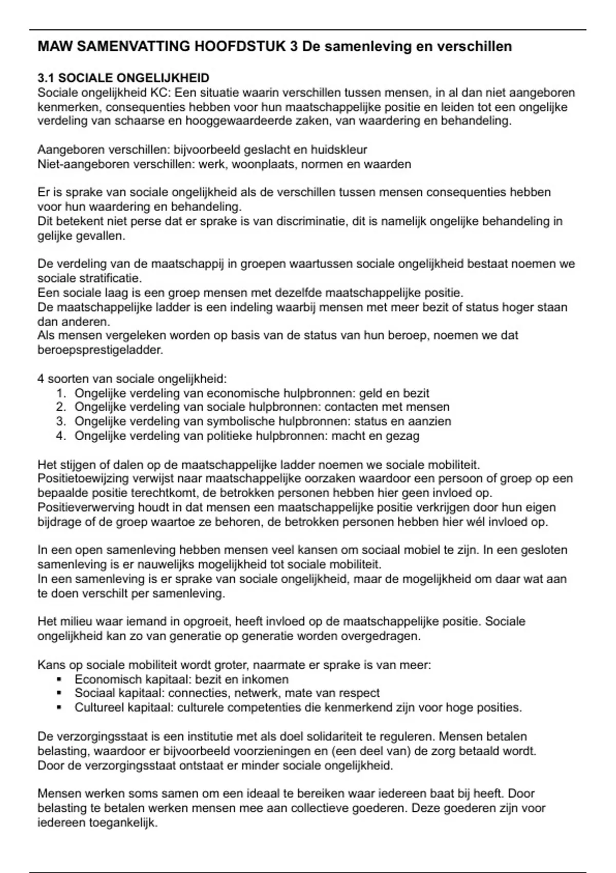 MAW SAMENVATTING HOOFDSTUK 3 De samenleving en verschillen