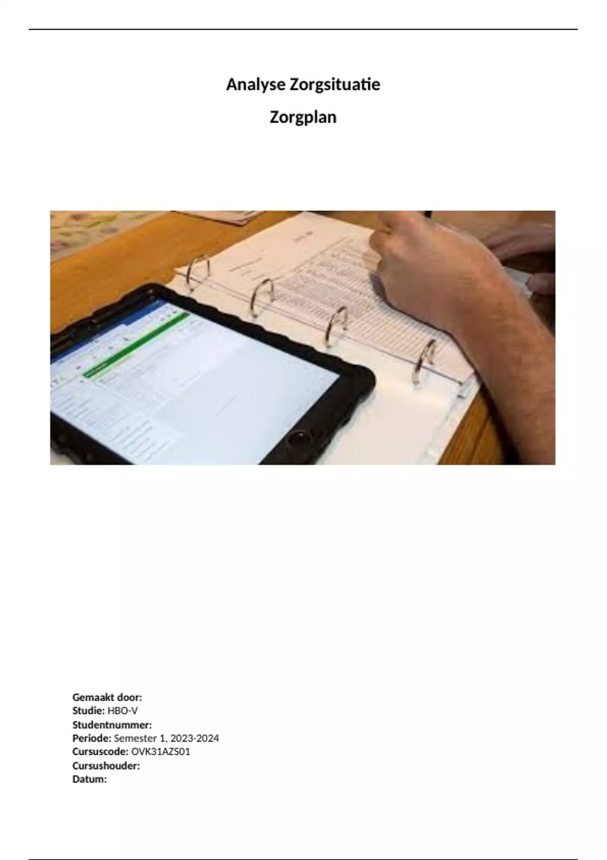 Onderstaand zorgplan is geschreven op basis van een casus uit de praktijk. Ik werk als leerling HBO-V