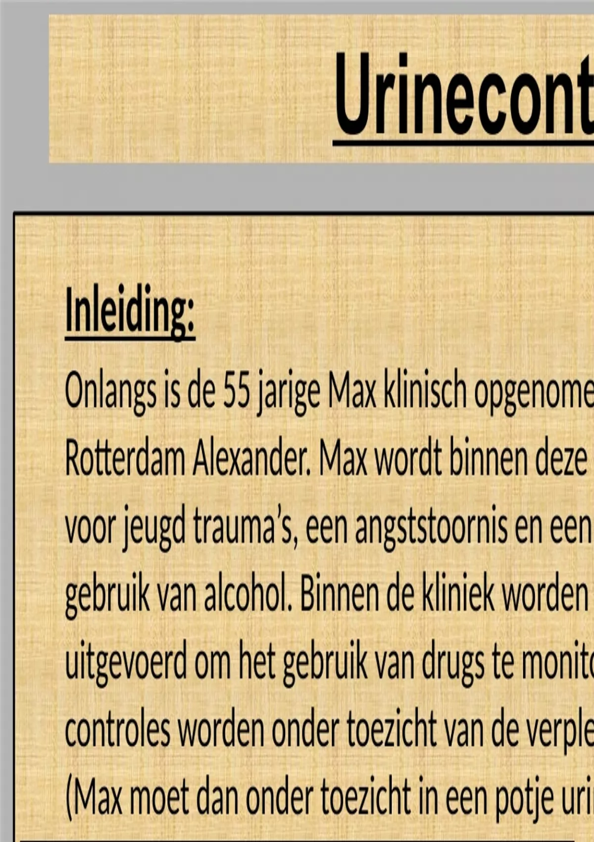 Onlangs is de 55 jarige Max klinisch opgenome