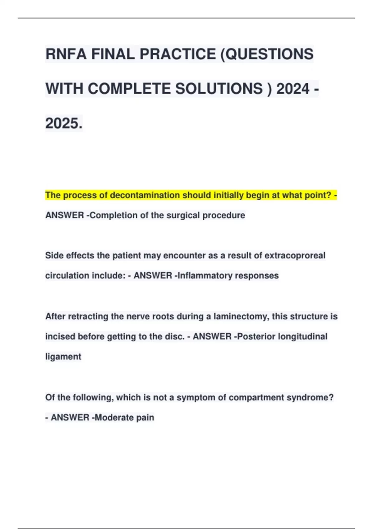 RNFA FINAL PRACTICE (QUESTIONS WITH COMPLETE SOLUTIONS ) 2024 - 2025. RNFA FINAL PRACTICE (QUESTIONS WITH COMPLETE SOLUTIONS ) 2024 - 2025. RNFA FINAL PRACTICE (QUESTIONS WITH COMPLETE SOLUTIONS ) 2024 - 2025. RNFA FINAL PRACTICE (QUESTIONS WITH COMPLETE SOLUTIONS ) 2024 - 2025. RNFA FINAL PRACTICE (QUESTIONS WITH COMPLETE SOLUTIONS ) 2024 - 2025.