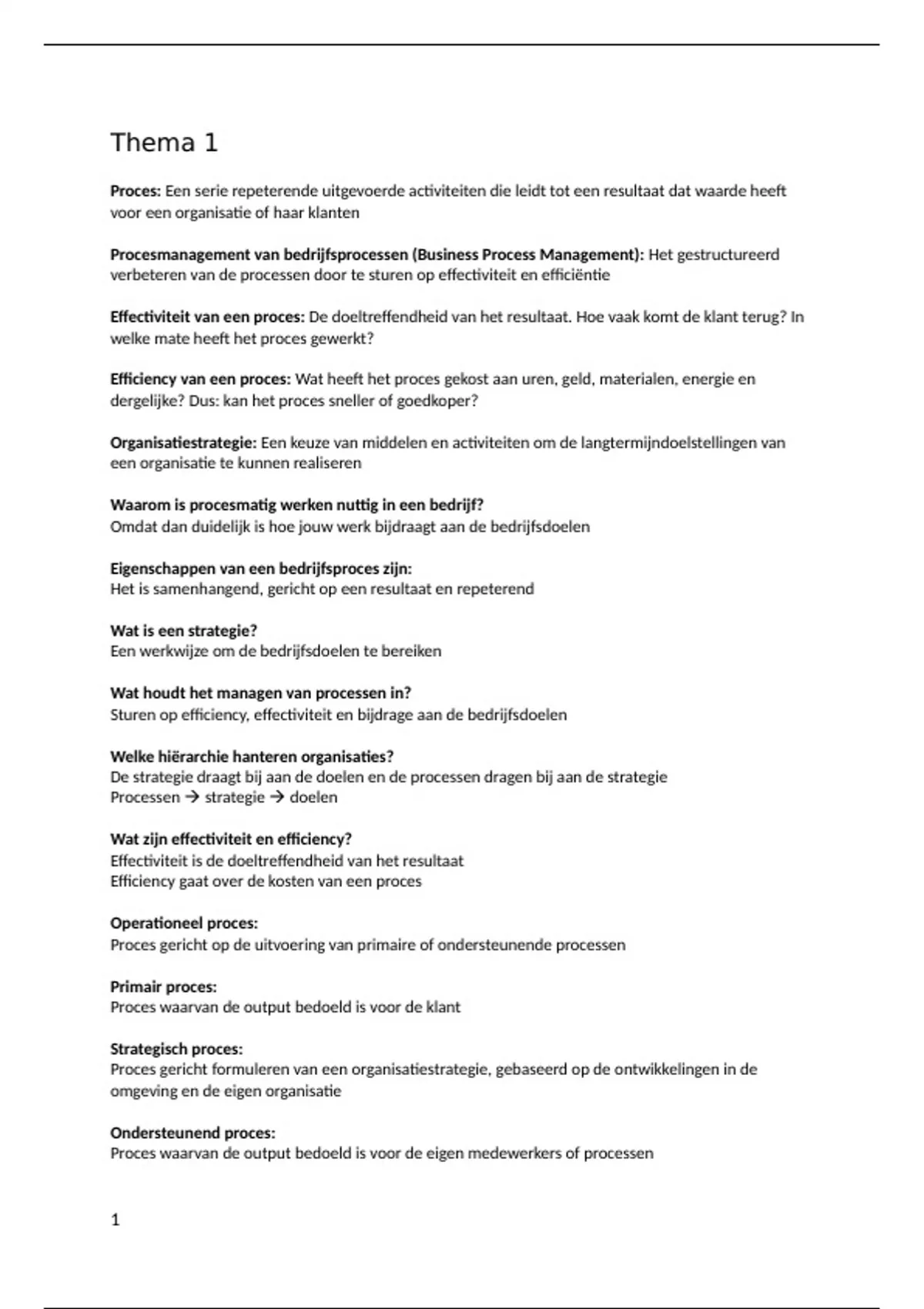 Proces: Een serie repeterende uitgevoerde activiteiten die leidt tot een resultaat dat waarde heeft