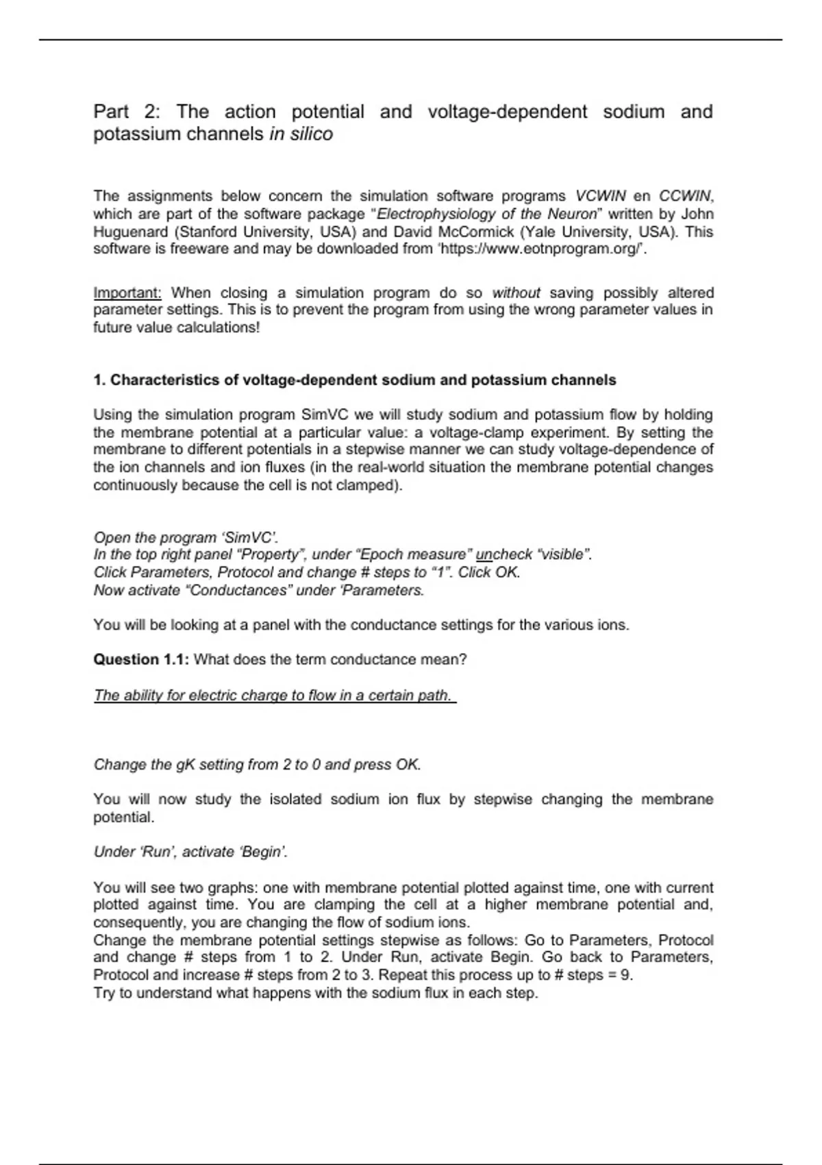 Using the simulation program SimVC we will study sodium and potassium flow by holding