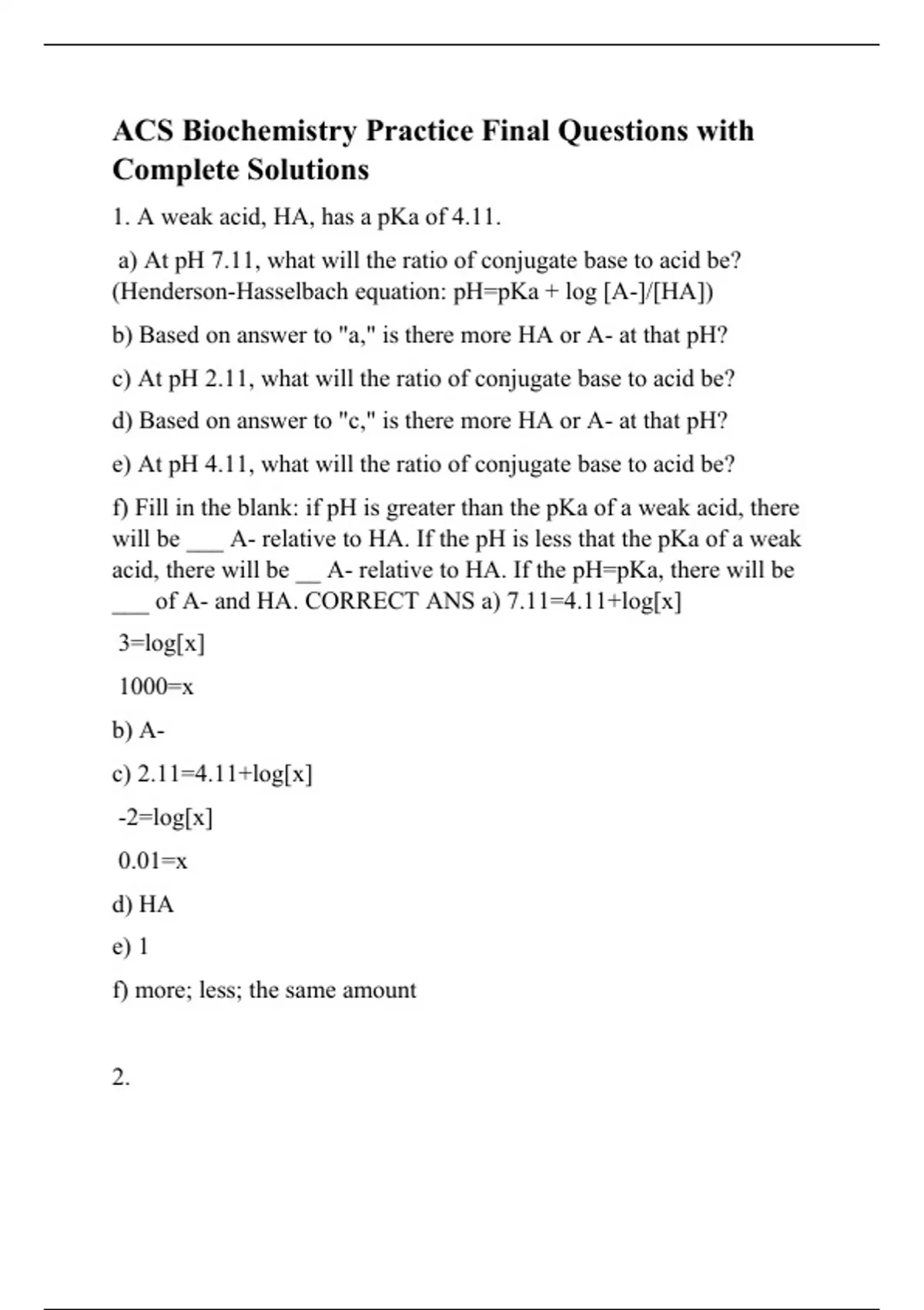 ACS Biochemistry Practice Final Questions with Complete Solutions.