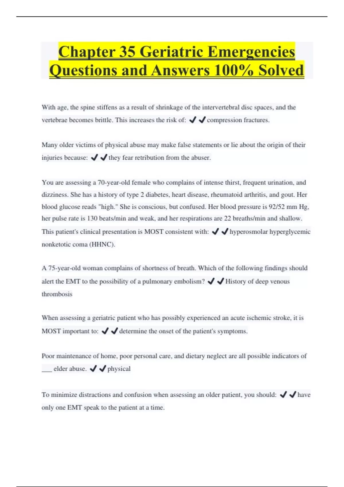 Chapter 35 Geriatric Emergencies Questions and Answers 100% Solved