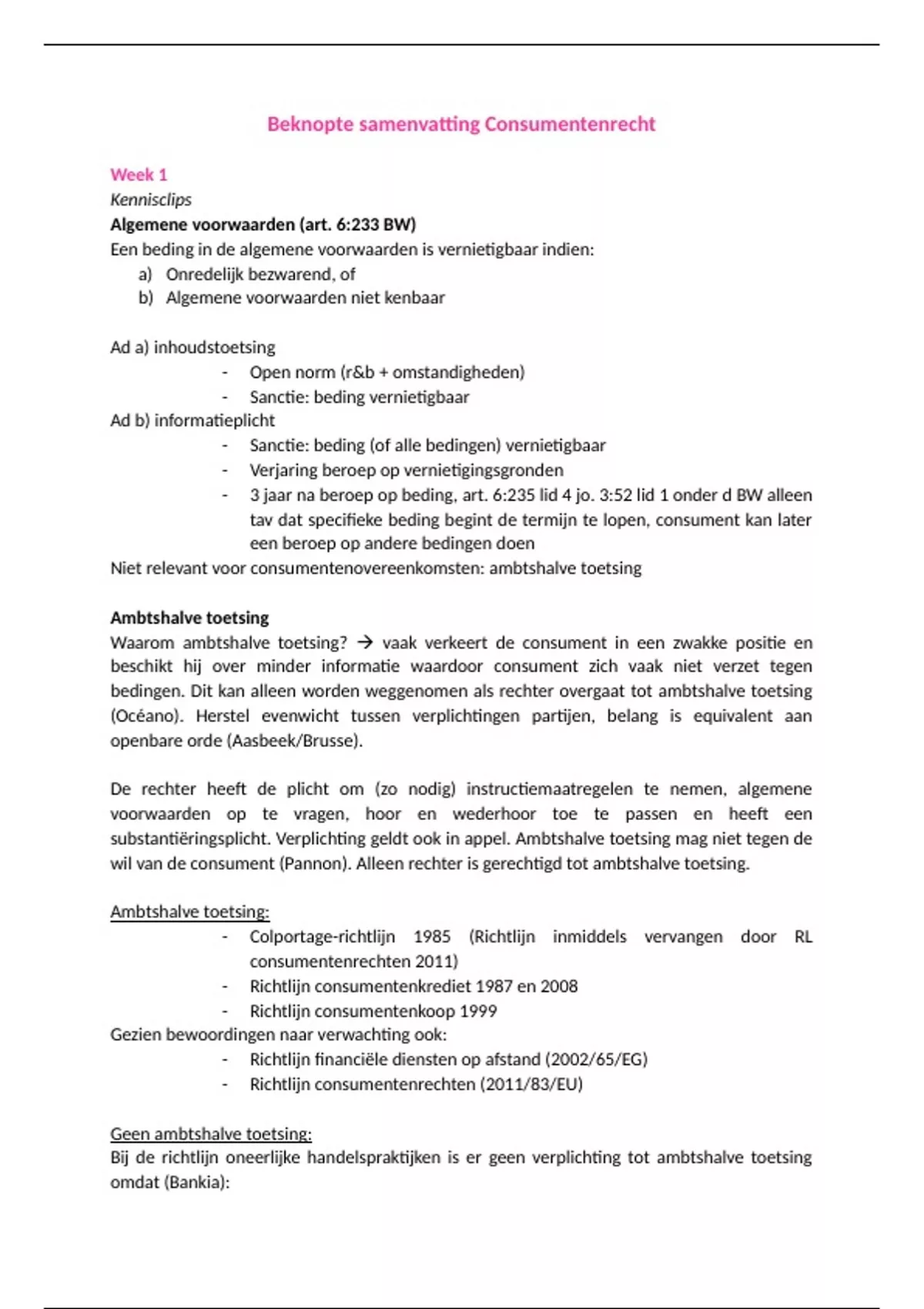 Samenvatting van alle literatuur, kennisclips en hoorcolleges. Ik heb dit vak met een 8.0 afgesloten.