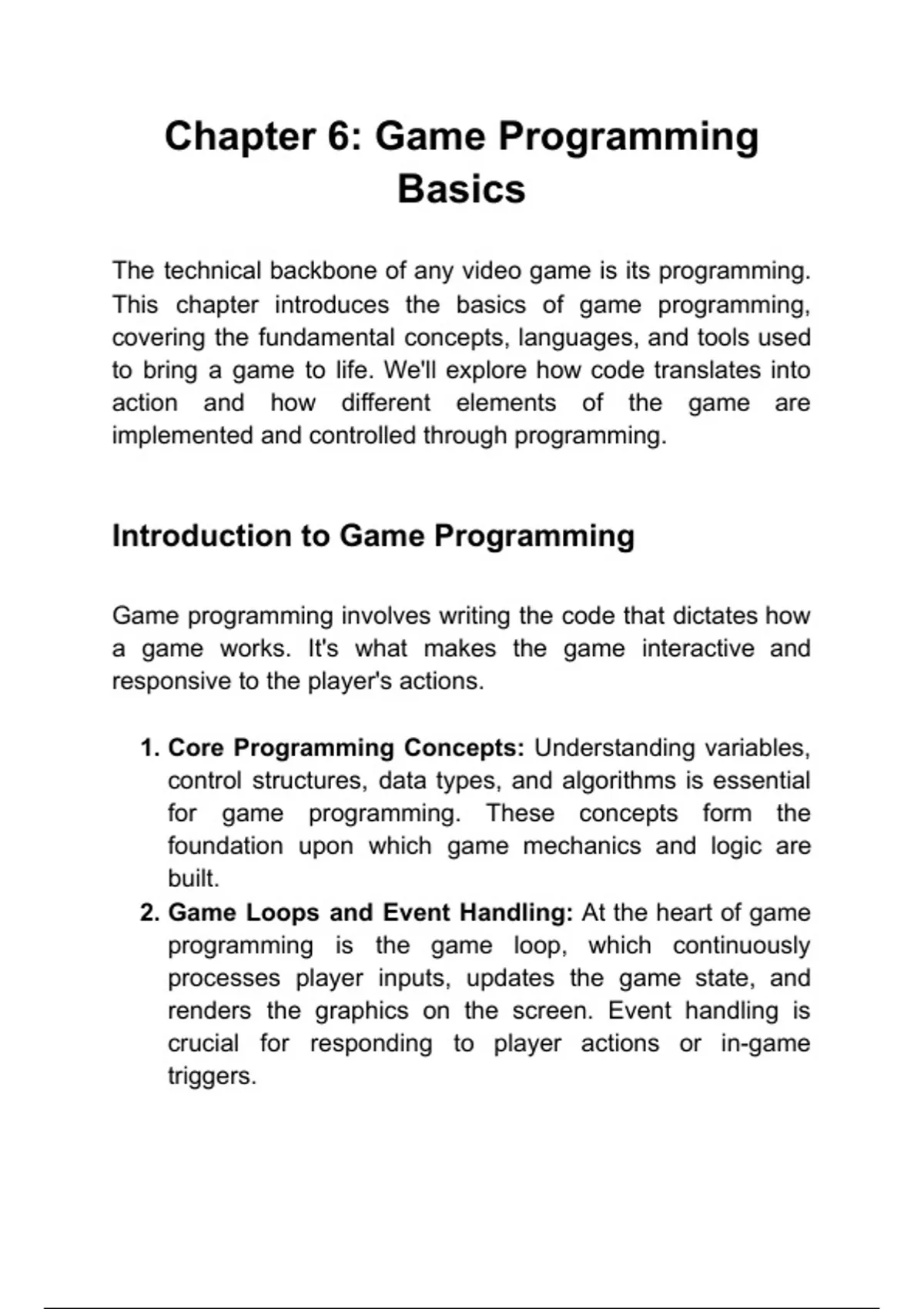 Description: Introduction to coding in game development and the tools used. Keywords: programming, coding, game development, tools Questions: What are the basics of game programming?, What tools are used in game coding?