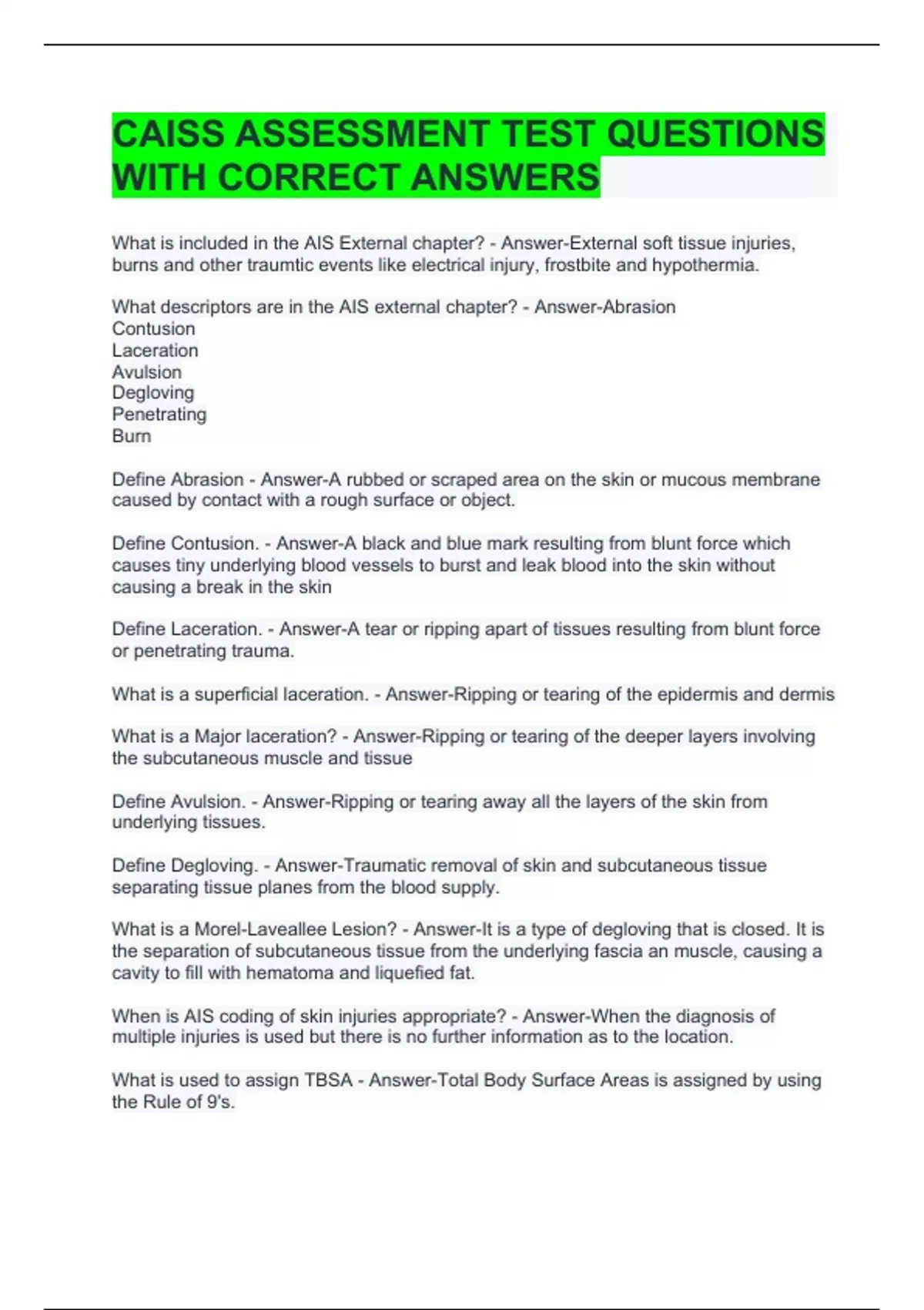 Define Avulsion. - Answer-Ripping or tearing away all the layers of the skin from