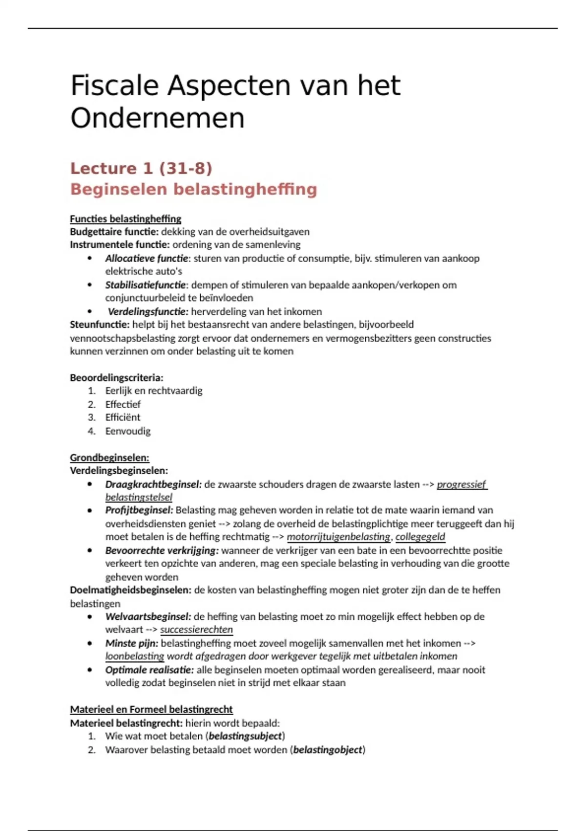 Fiscale Aspecten van het Ondernemen Samenvatting, bachelor vak of deficiëntievak voor de Post-Master Accountancy (RA opleiding)