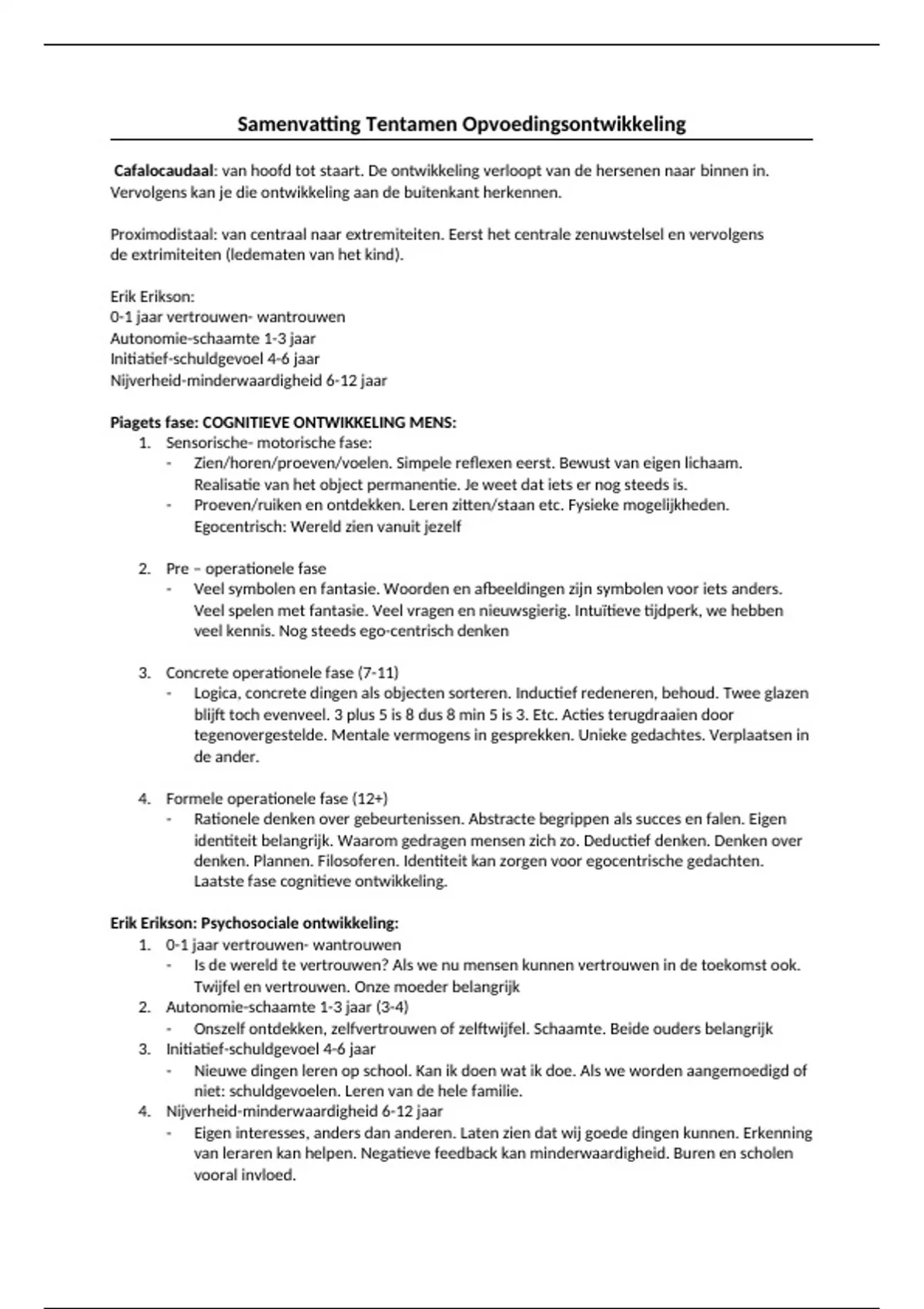 Samenvatting Tentamen Opvoedingsontwikkeling