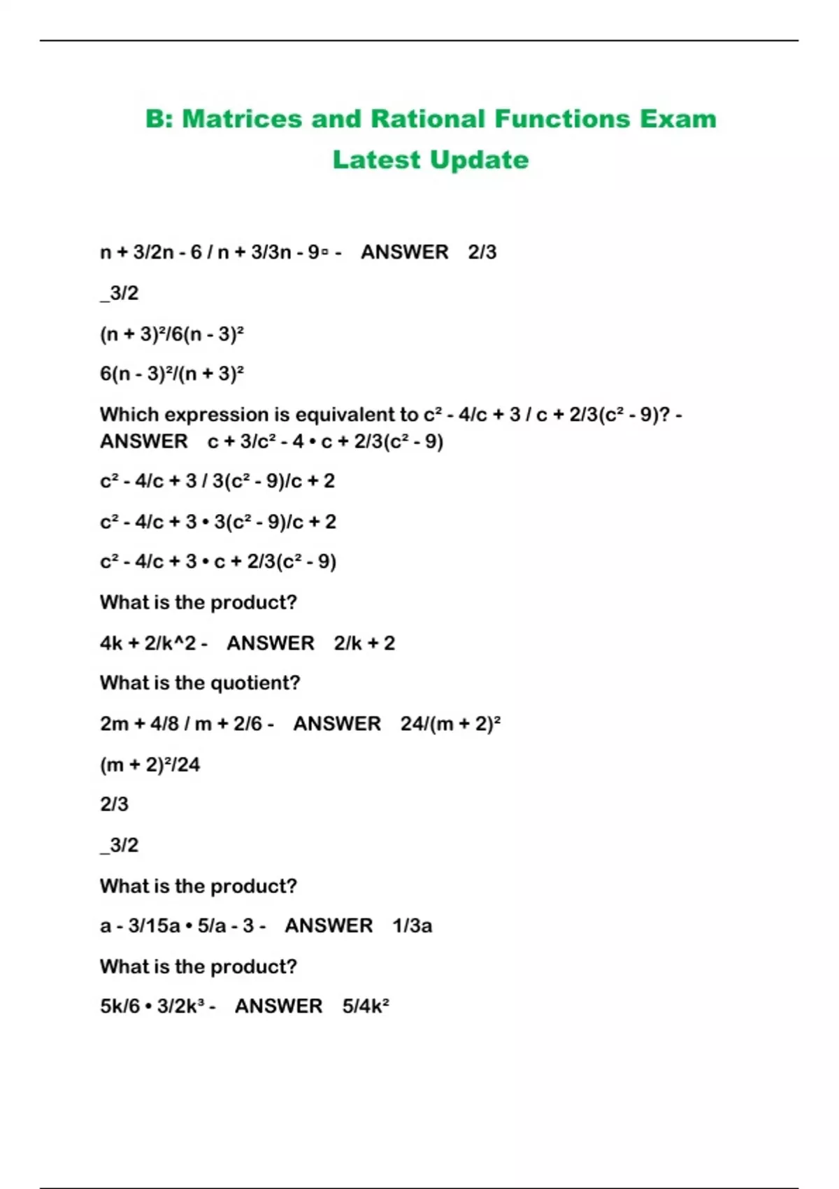 B: Matrices and Rational Functions Exam Latest Update