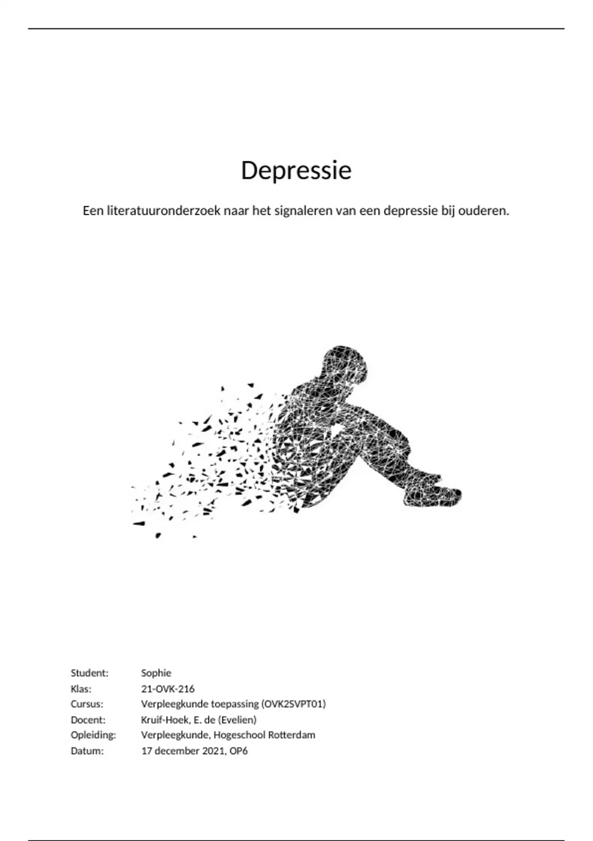 Dit literatuuronderzoek gaat over hoe u een depressie kan signaleren bij ouderen in de wijk.