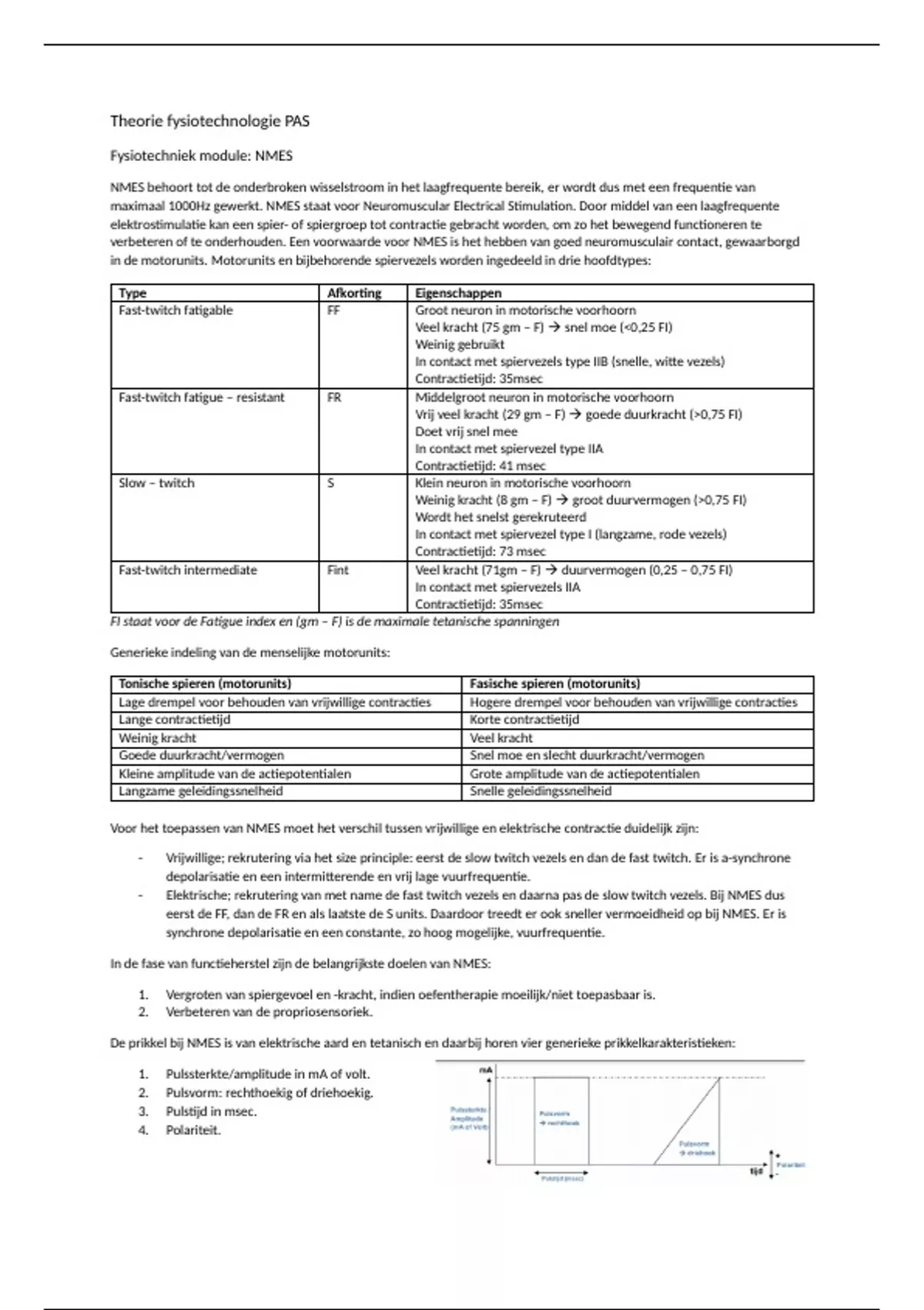 eerst de FF, dan de FR en als laatste de S units. Daardoor treedt er ook sneller vermoeidheid op bij NMES. Er is