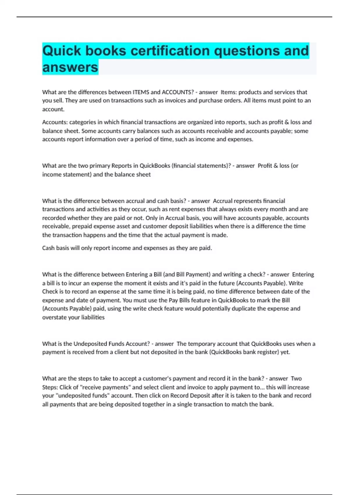 Quick books certification questions and answers.