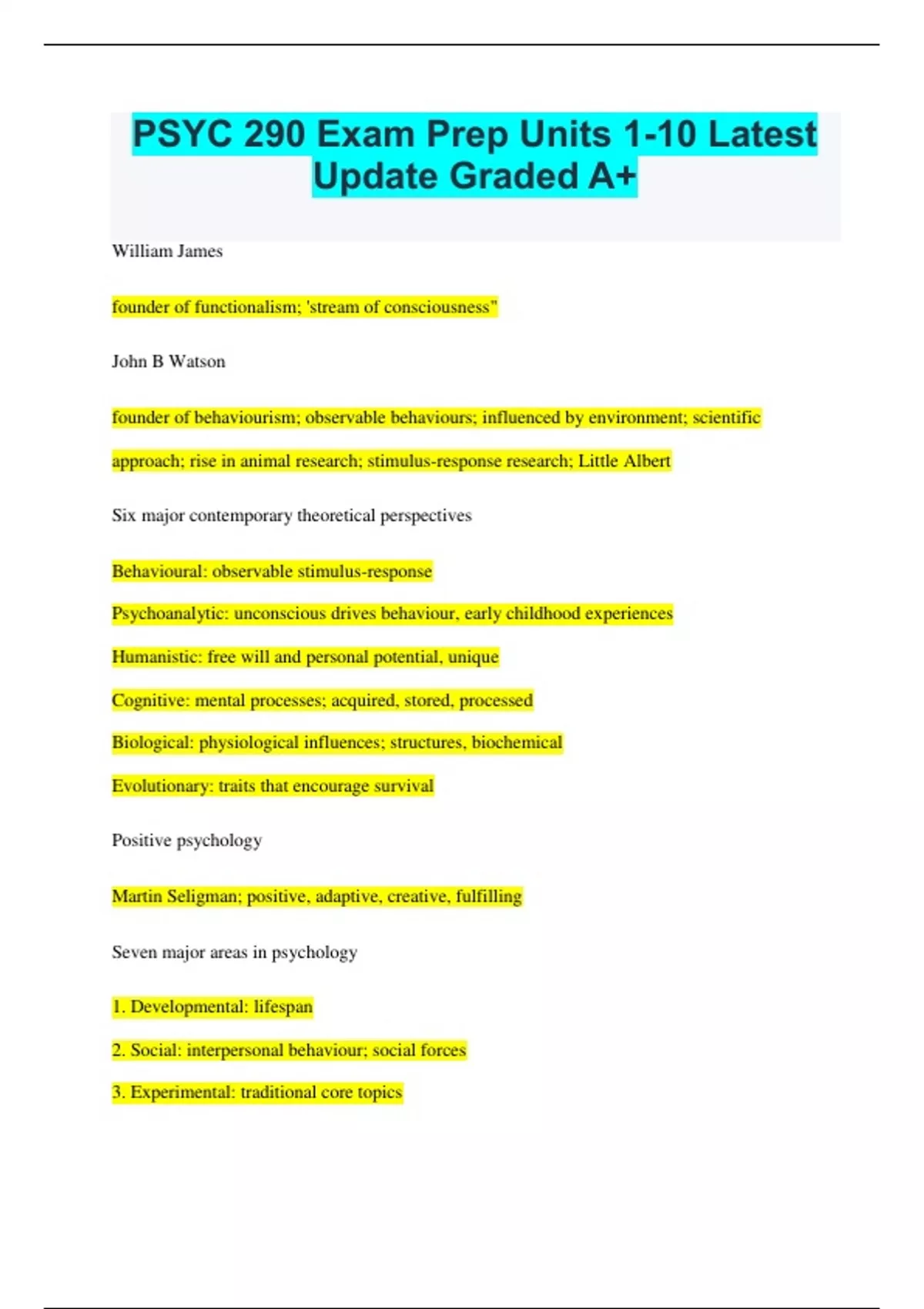 PSYC 290 Exam Prep Units 1-10 Latest Update Graded A+