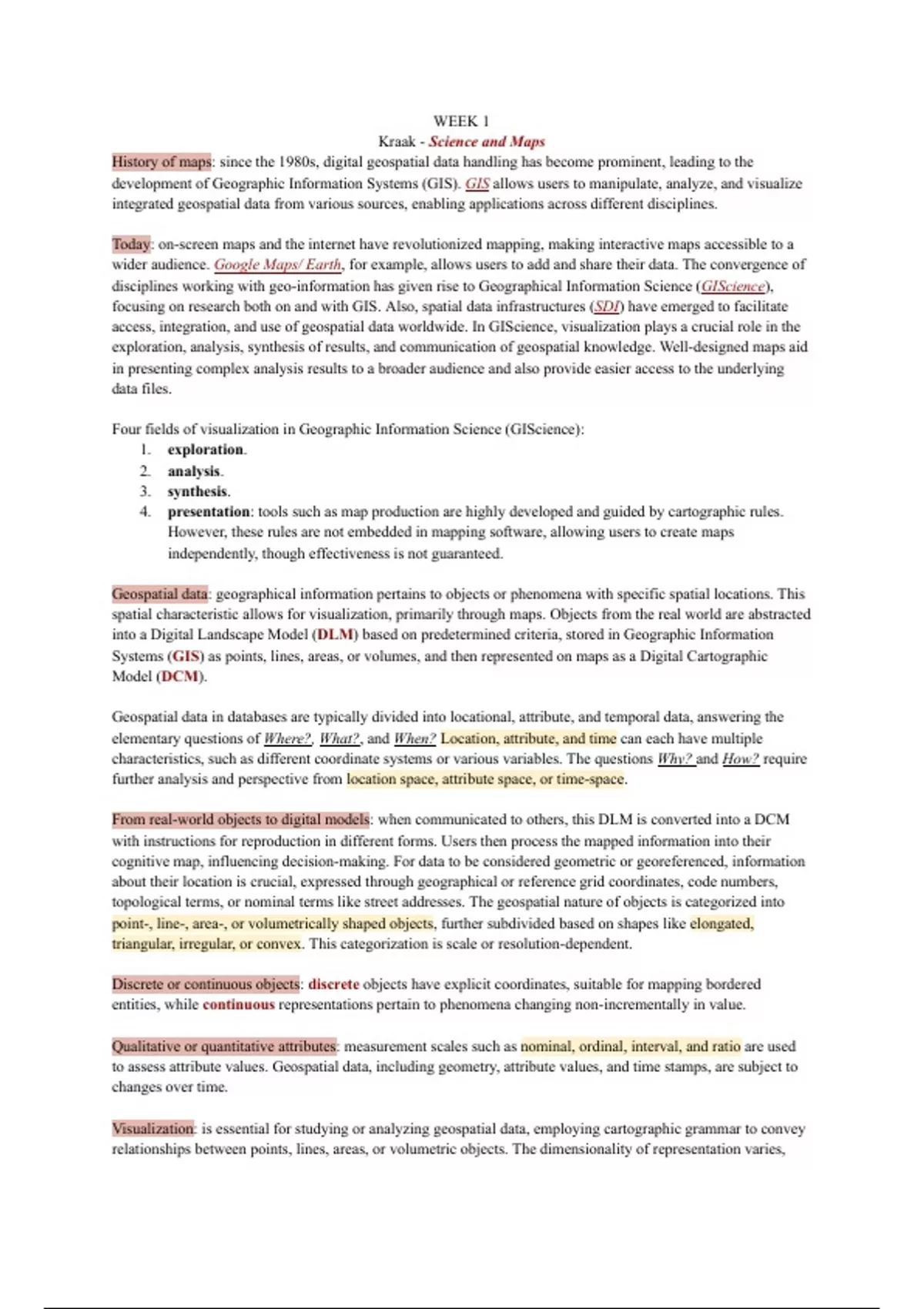 spatial characteristic allows for visualization, primarily through maps. Objects from the real world are abstracted