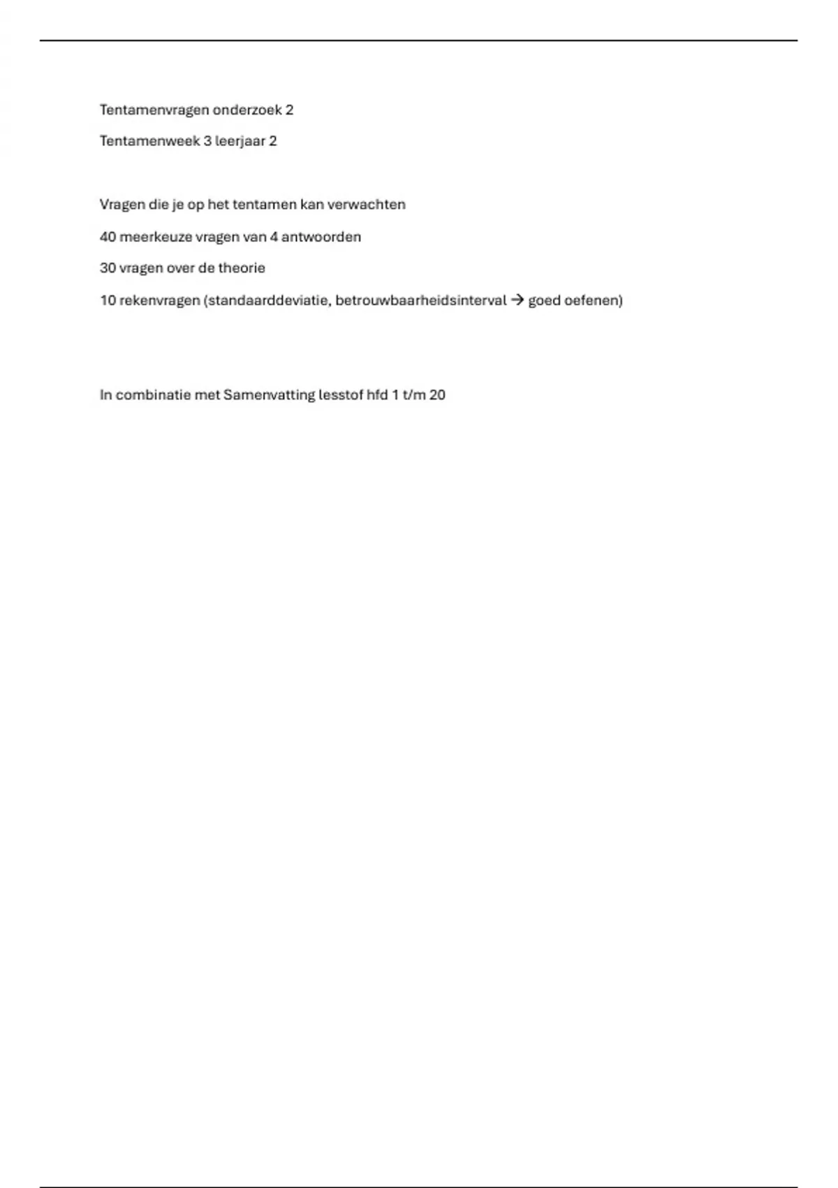 10 rekenvragen (standaarddeviatie, betrouwbaarheidsinterval → goed oefenen)