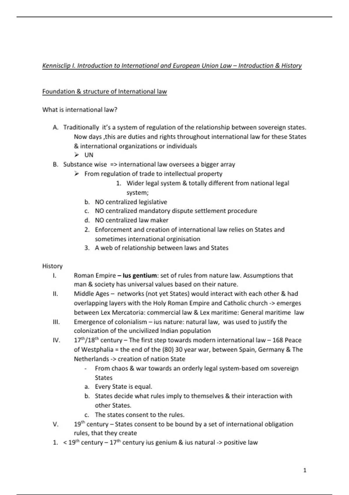 1. < 19th century – 17th century ius genium & ius natural -> positive law