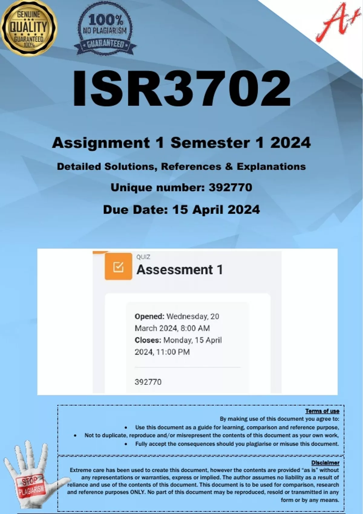 ISR3702 Assignment 1 (COMPLETE ANSWERS) Semester 1 2024 (392770) - DUE 15 April 2024