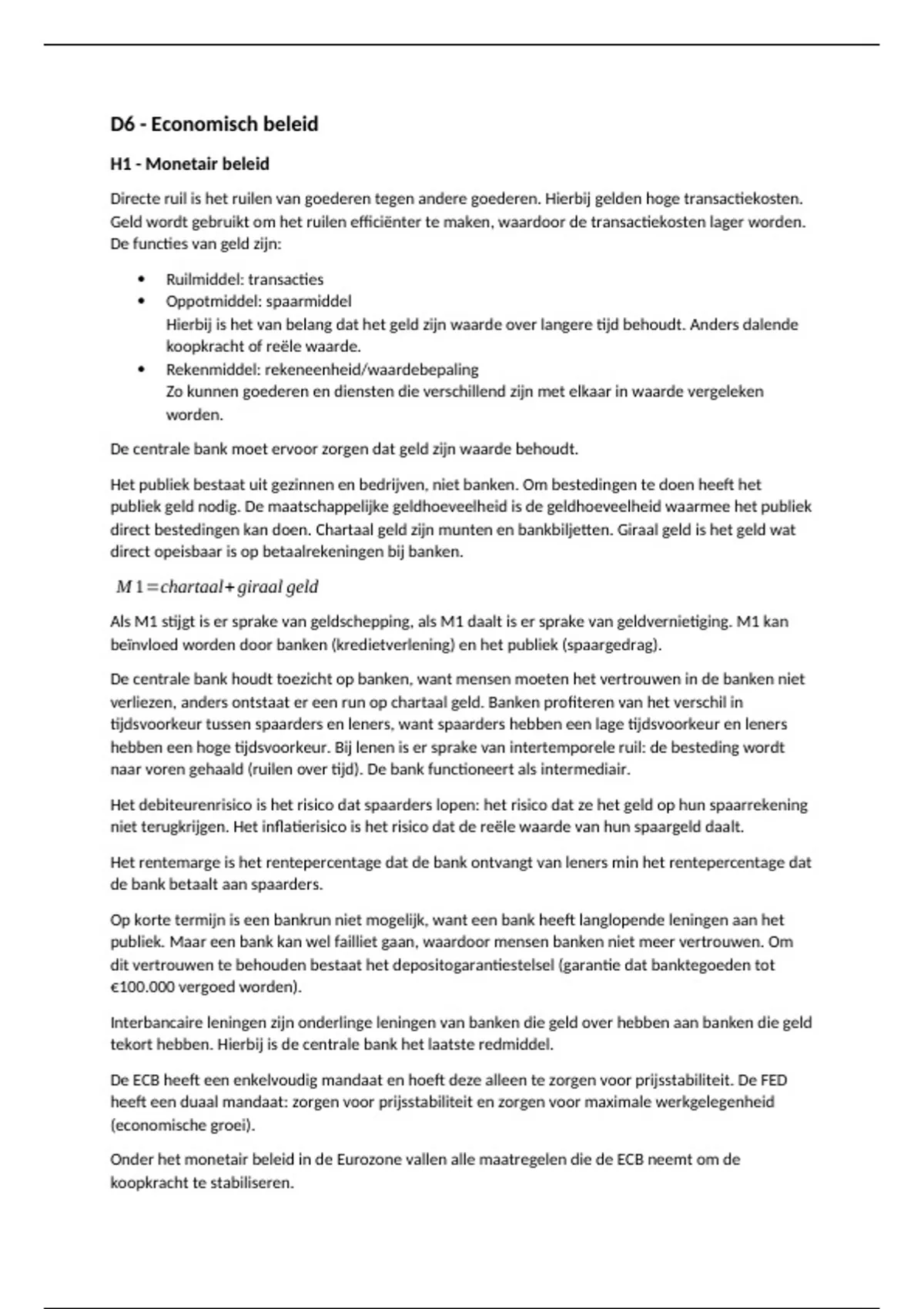 H1 - Monetair beleid