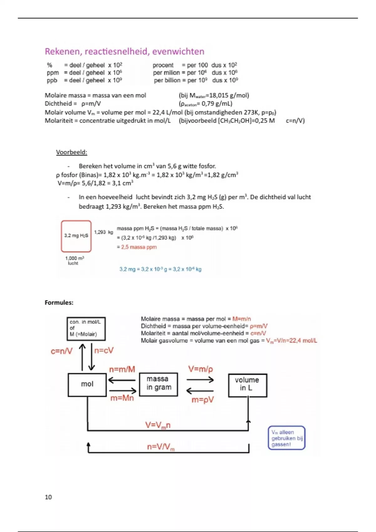 - Bereken het volume in cm3 van 5,6 g witte fosfor.