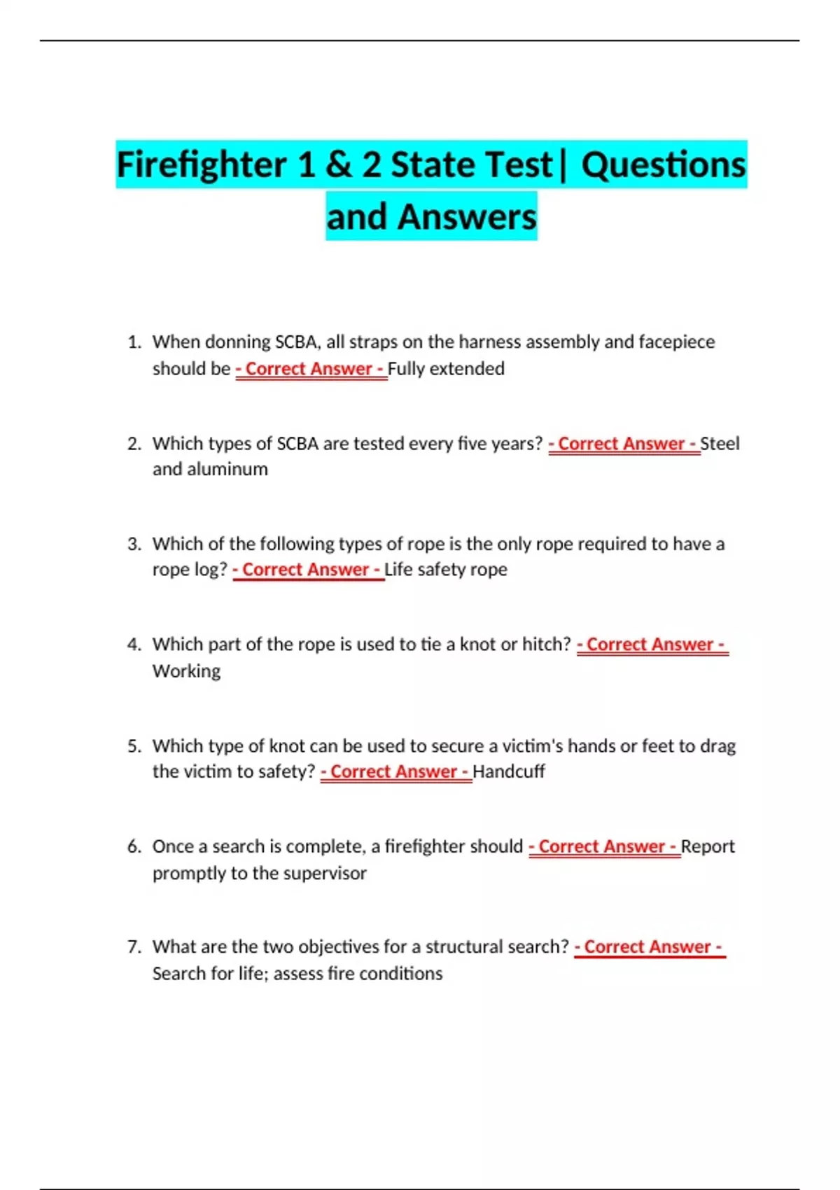 Firefighter 1 & 2 State Test| Questions and Correct Answers Latest 2024