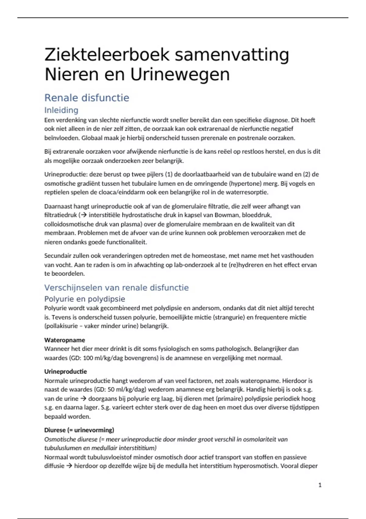 Samenvatting Ziekteleerboek Nieren en urinewegen
