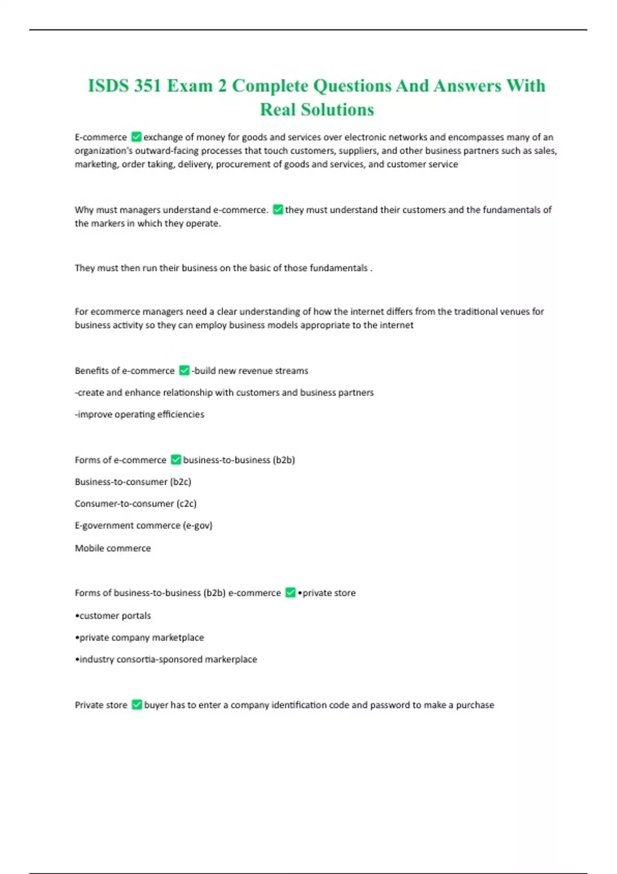 ISDS 351 Exam 2 Complete Questions And Answers With Real Solutions
