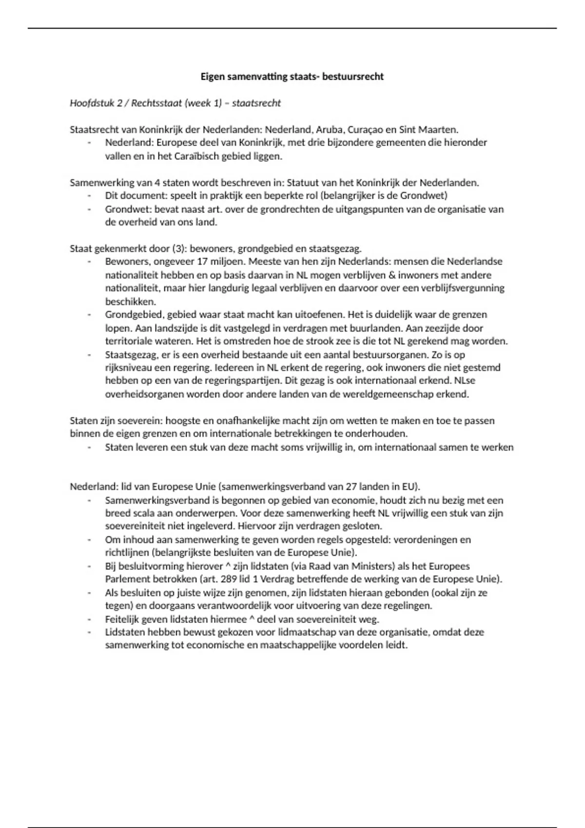 Eigen samenvatting staats- bestuursrecht
