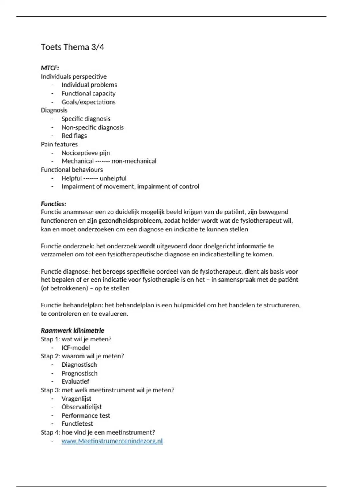 Samenvatting van de belangrijkste stof voor de kennistoets van fysiotherapie thema 3 en 4. zelf een 7 gehaald voor de kennistoets en een 10 voor het PA van thema 4.