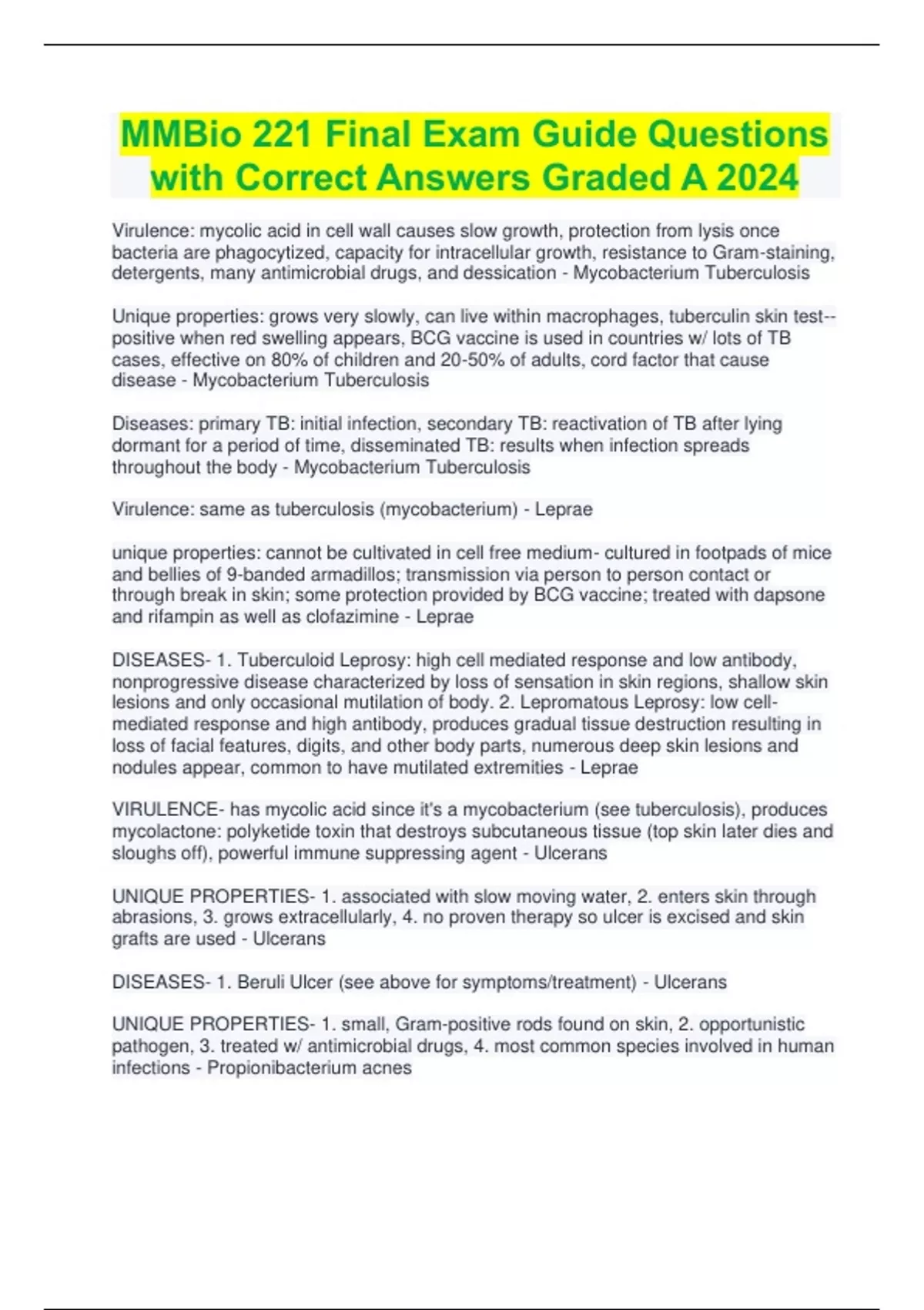 MMBio 221 Final Exam Guide Questions with Correct Answers Graded A 2024