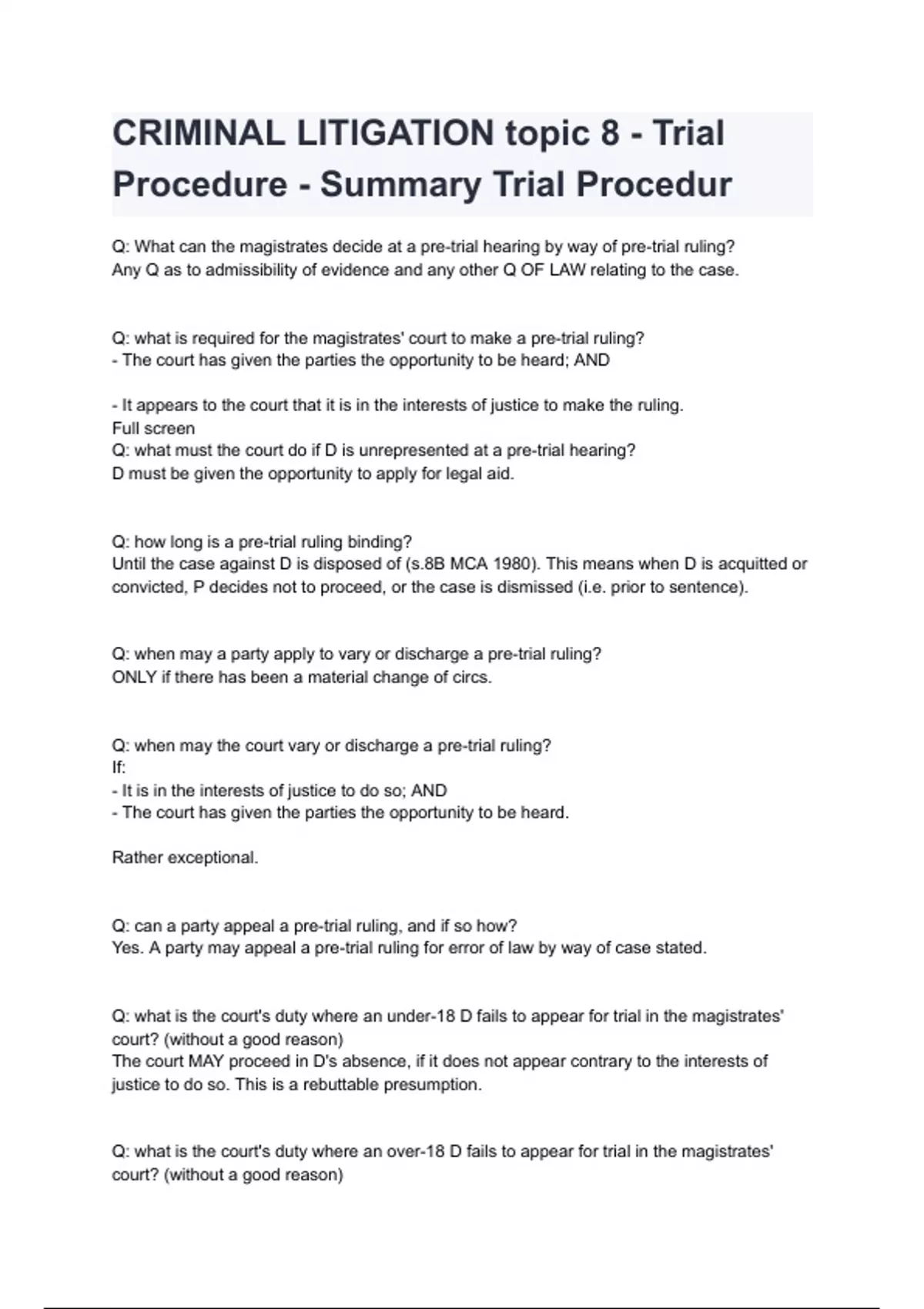 CRIMINAL LITIGATION topic 8 - Trial Procedure - Summary Trial Procedure