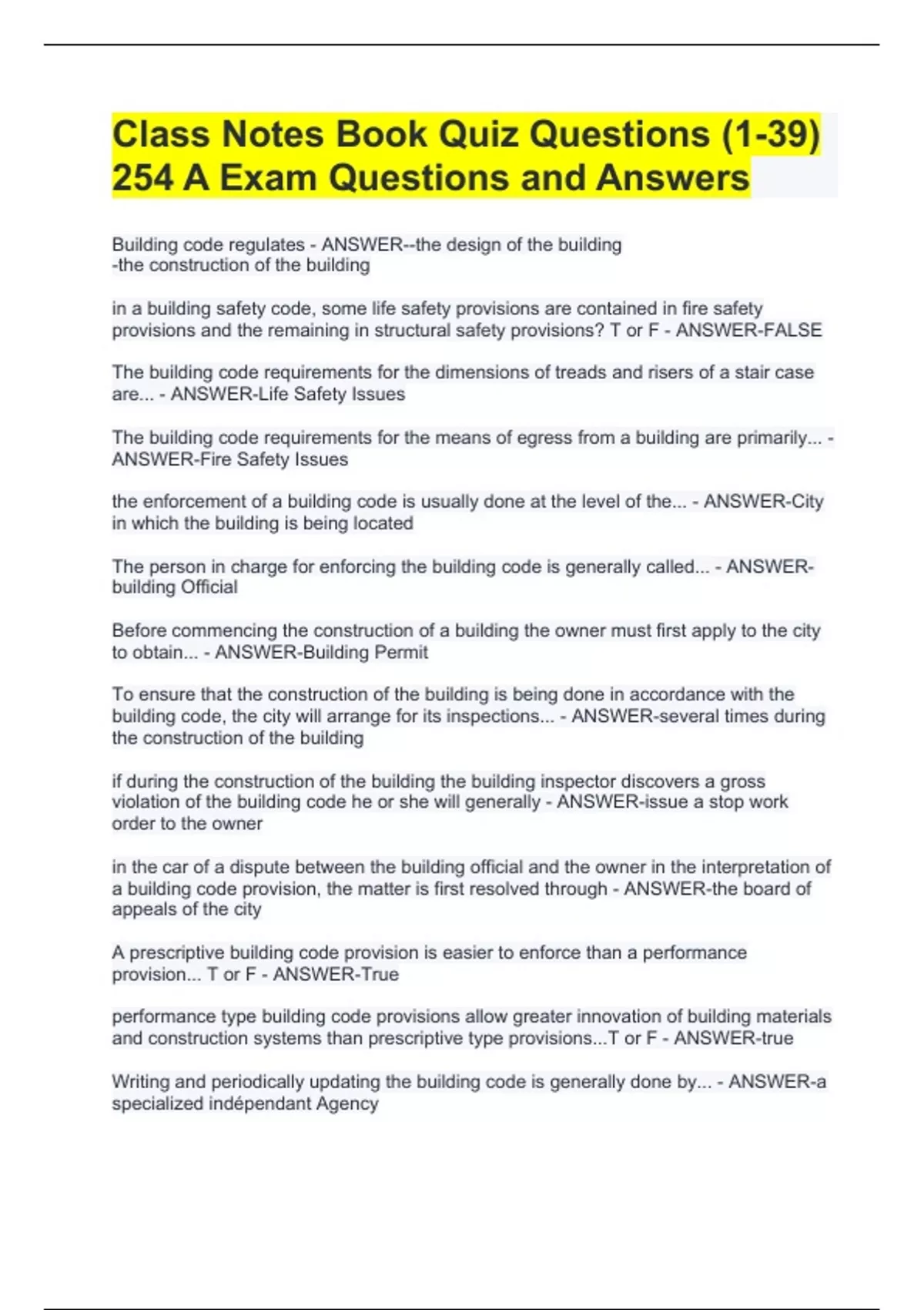 are... - ANSWER-Life Safety Issues