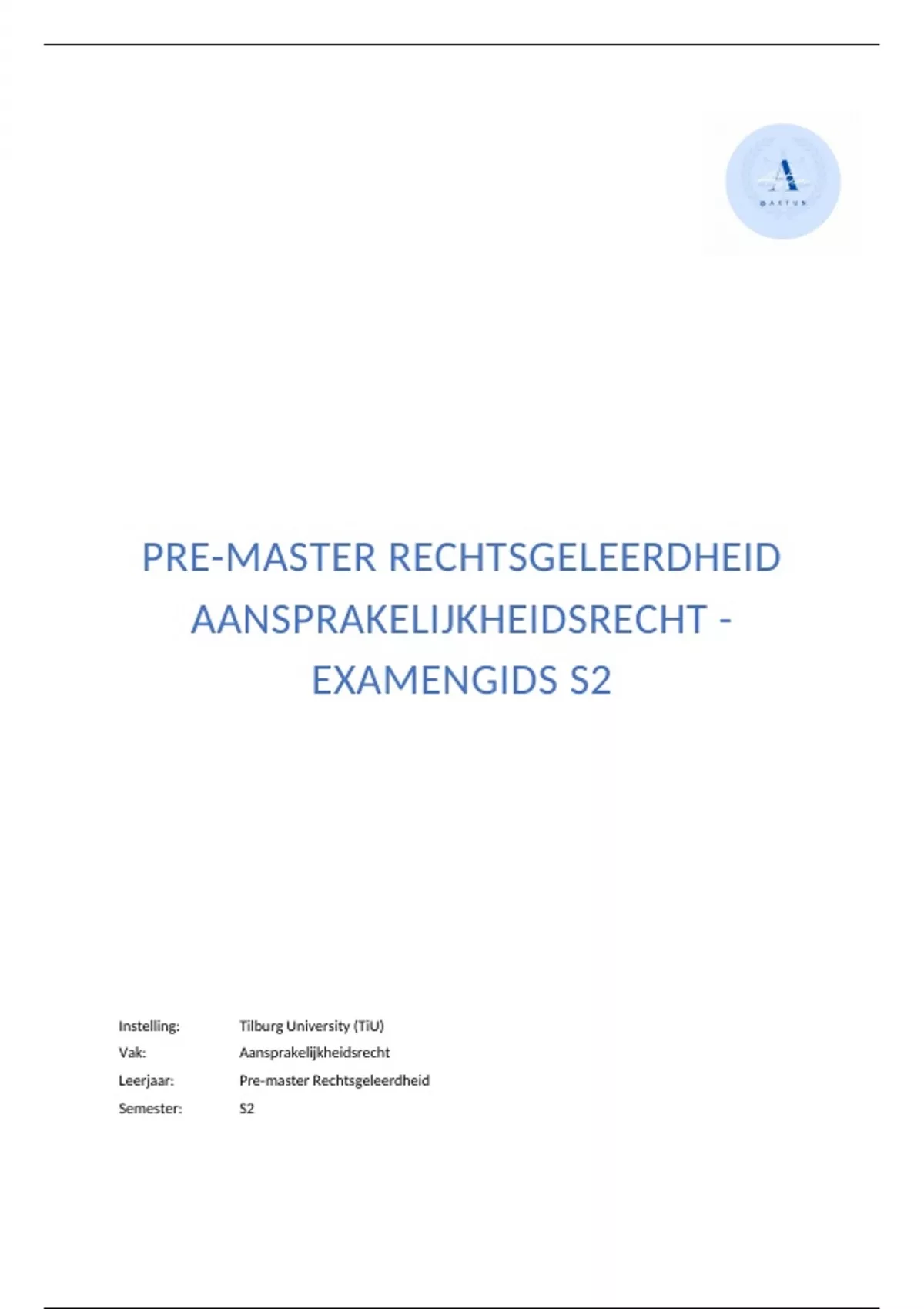 Leerjaar: Pre-master Rechtsgeleerdheid