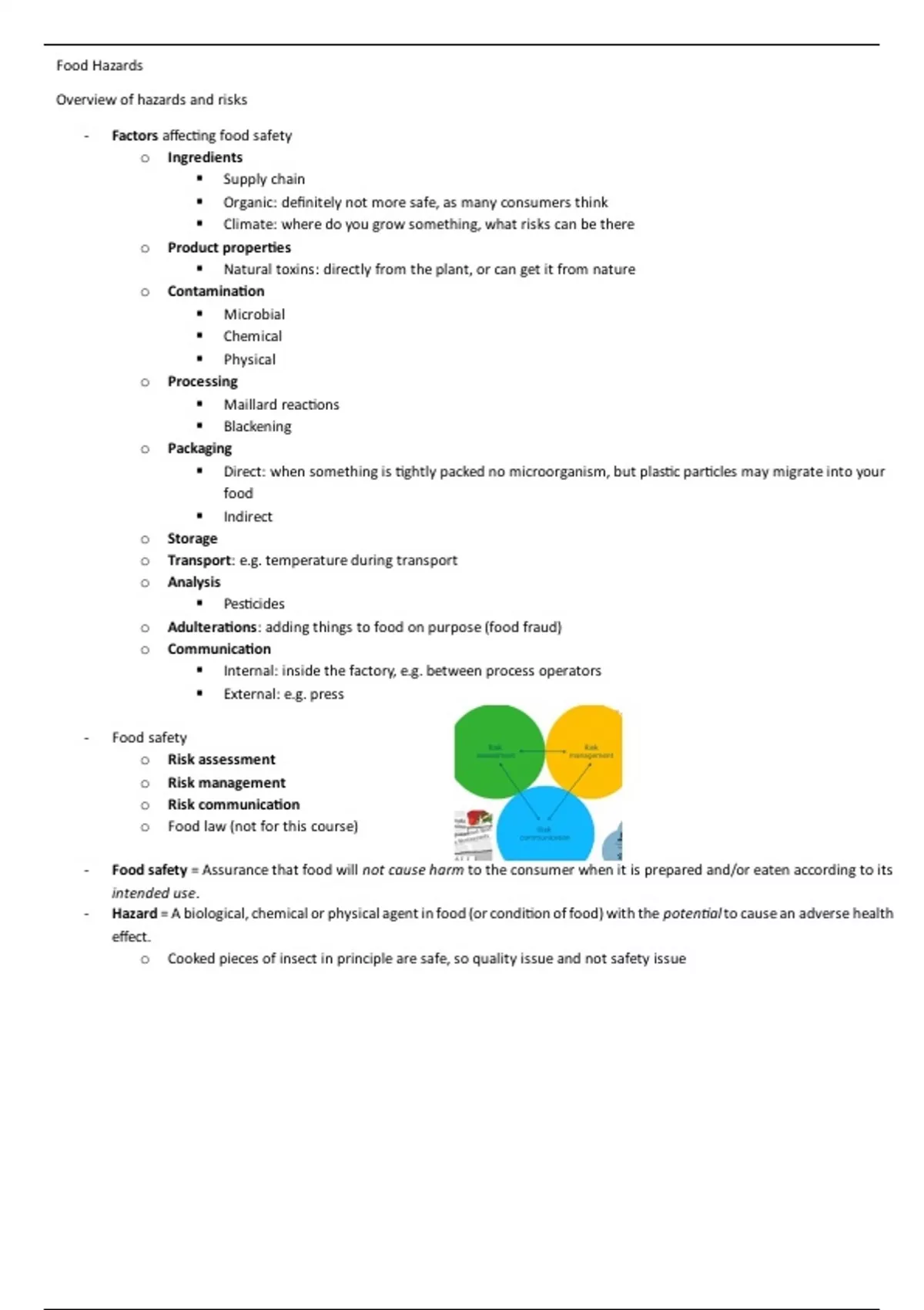 ,- Potential hazards and risks in food