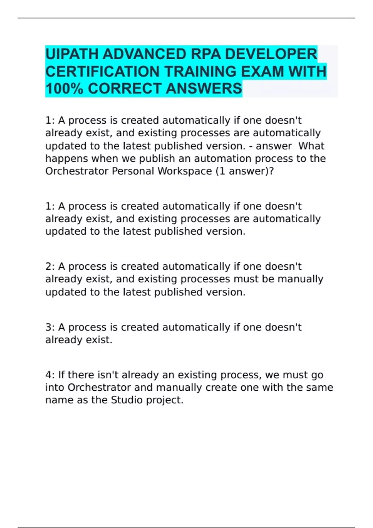 UIPATH CERTIFICATION EXAM WITH 100% CORRECT ANSWERS.