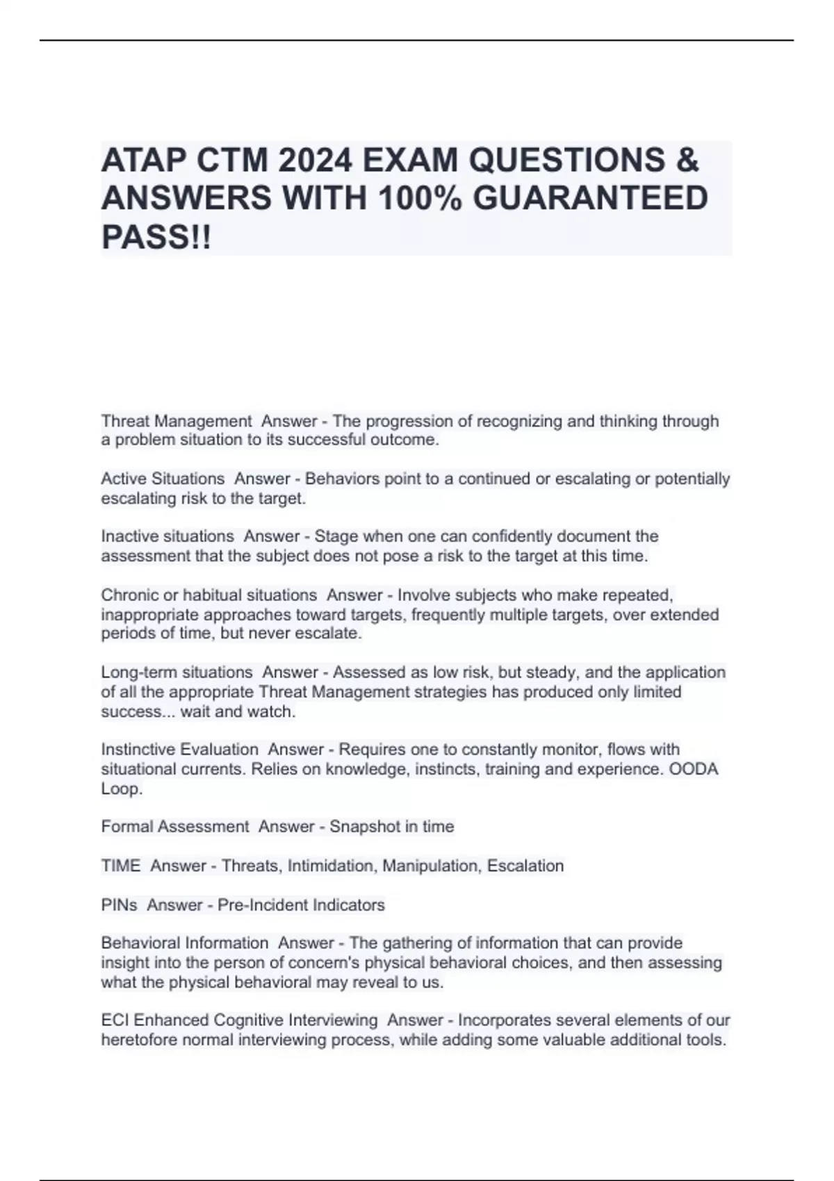 ATAP CTM 2024 EXAM QUESTIONS & ANSWERS WITH 100% GUARANTEED PASS!!